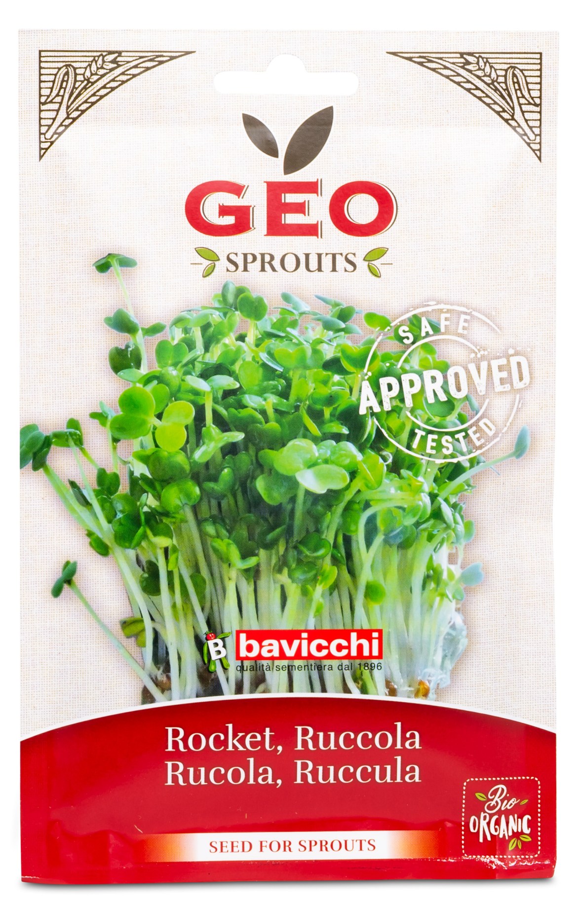 GEO Ruccolafrö EKO är ekologiska ruccolafrön som du enkelt kan grodda hemma, för smakrika och hälsosamma groddar på bara några få dagar. Ruccolagroddar har en smak som påminner om vanliga ruccolablad, och är därför perfekta att tillsätta i olika sallader eller på smörgåsen. Groddarna är dessutom nyttiga, med ett högt innehåll av bland annat C-vitamin som är viktigt för immunsystemets normala funktion.