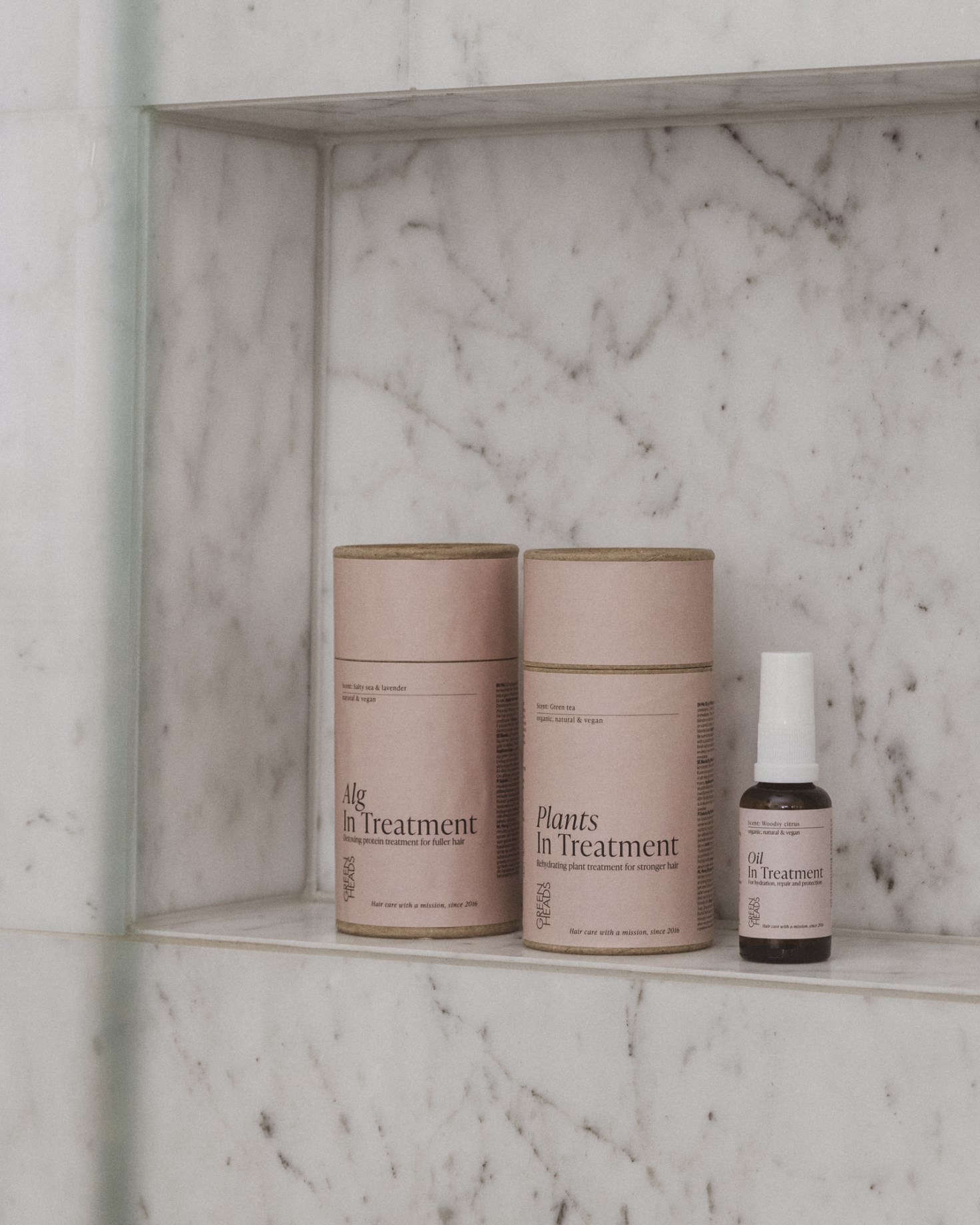 Alg in Treatment från Green Heads är en prisbelönt och helt naturlig detoxande hårkur. Alger ger en riktig detox och skyddar, stärker och reparerar håret. Håret blir dessutom glansigt samtidigt som lavendel lugnar hårbotten. Hår och hårbotten blir grundligt rengjorda från beläggningar och metaller som kan missfärga håret, vilket kan ge en lätt uppljusande effekt. Proteinet och de naturliga aminosyrorna från alger bygger upp håret och ger håret en fylligare känsla. Hårinpackningen är vegansk, cruelty-free och passar alla hårtyper. Kuren har en naturlig doft av salt hav och lavendel.