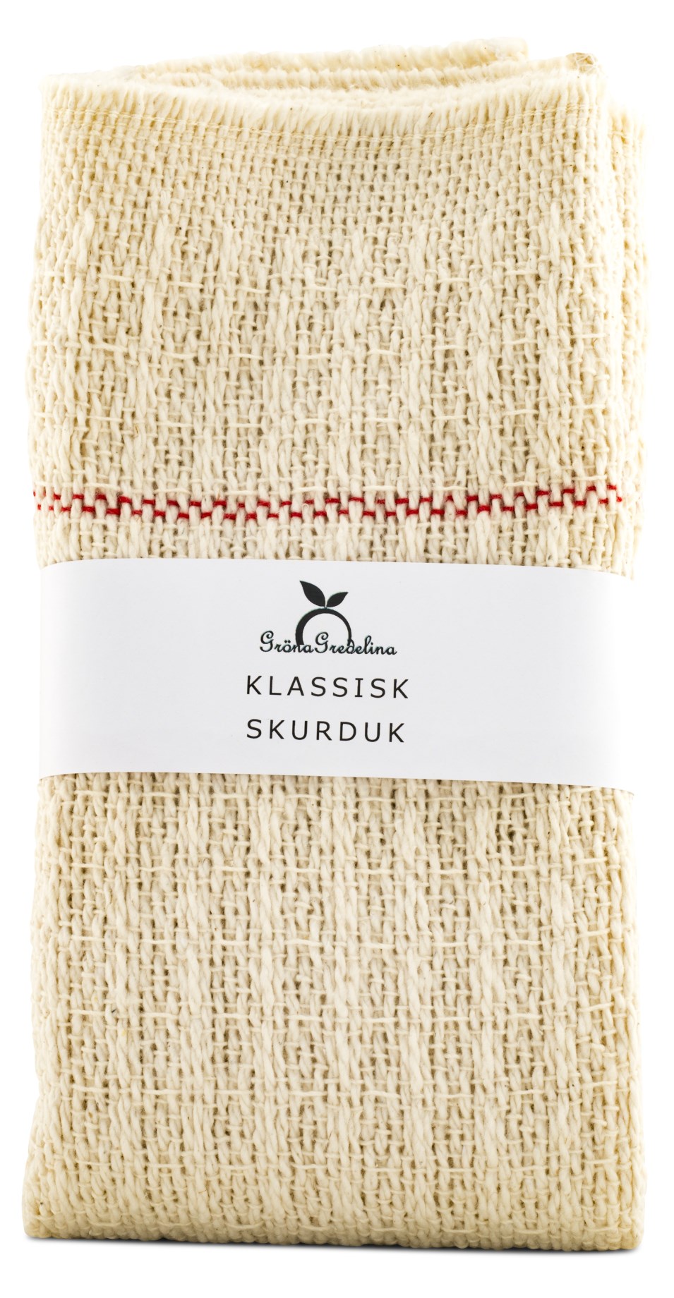 Gröna Gredelina Klassisk Skurduk är perfekt till städning och torkning av disk. Skurduken är tillverkad i 100 % bomull och kan användas i både kök och badrum i och med den höga uppsugningsförmågan. Duken har en räfflad yta och design vilket gör den till ett klassiskt val. Duken är tålig och kan tvättas i maskin.
