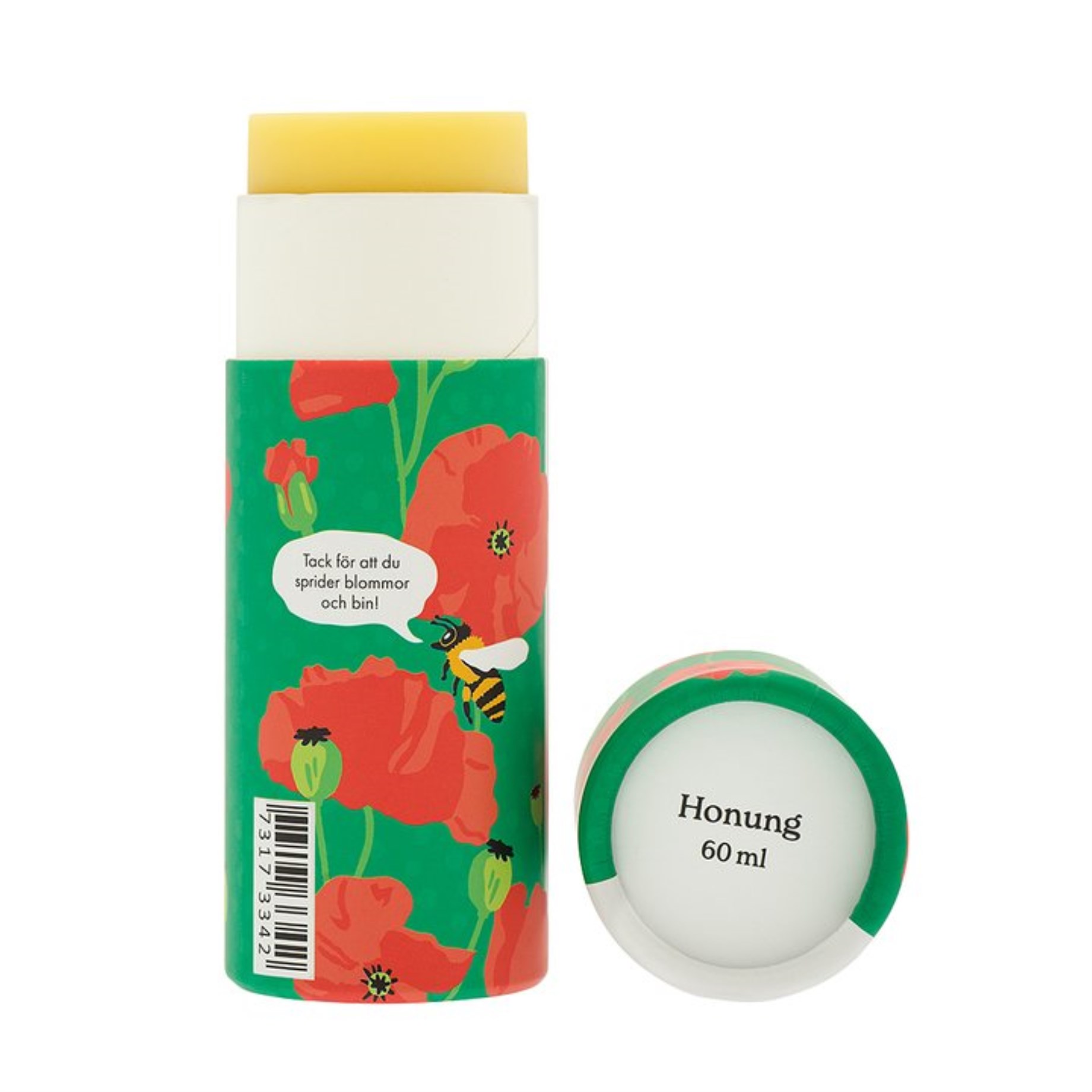 Har du torra hälar eller självsprickor på fötterna? Då ska du prova Gustaf & Linnea Fotstift Ekologiskt, ett mjukgörande fotstift som du enkelt applicerar på fötterna utan onödigt kladd. Varje fotstift är tillverkat för hand med omsorg! Detta stick är skapat av bivax och honung från bin som flugit över den svenska floran. Innehåller även kallpressad gotländsk rapsolja och sheasmör, samt en behaglig doft av vanilj. Stiftet är bra för både din hud och natur - med stiftet bidrar du nämligen till att sprida blommor och bin för ett välfungerande ekosystem! Förpackningen är tillverkad i papp med en snygg och färgrik design av vallmoblomman.
