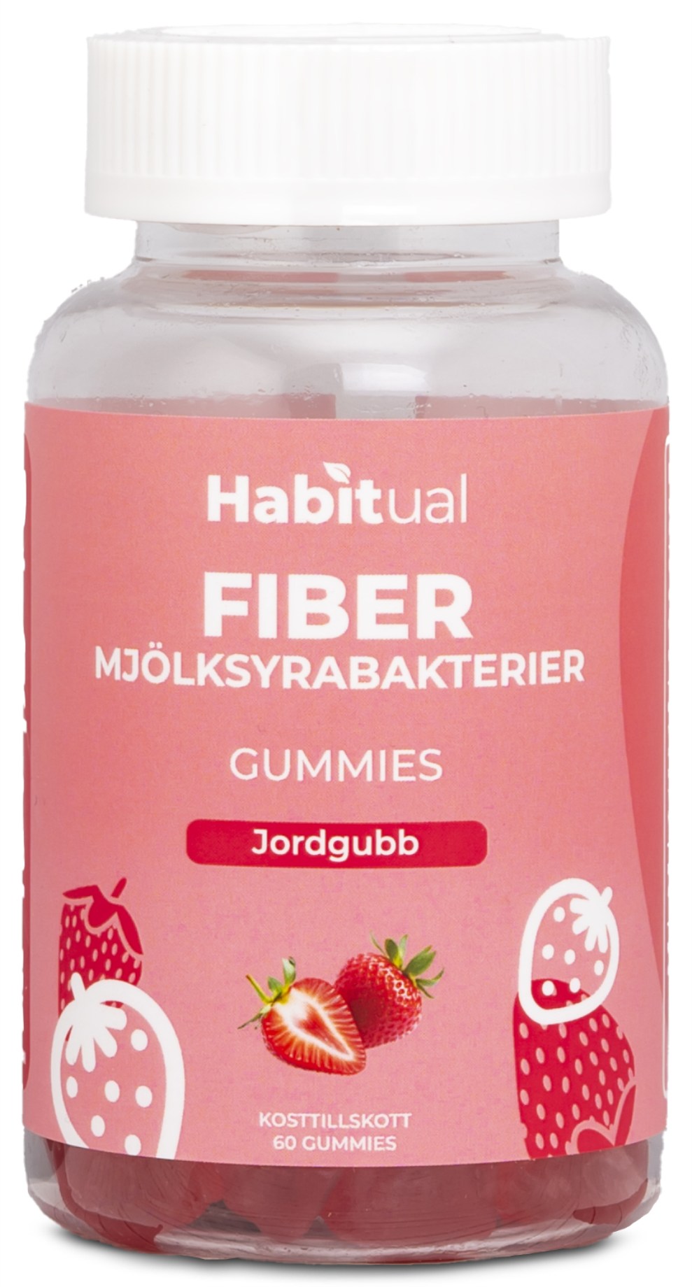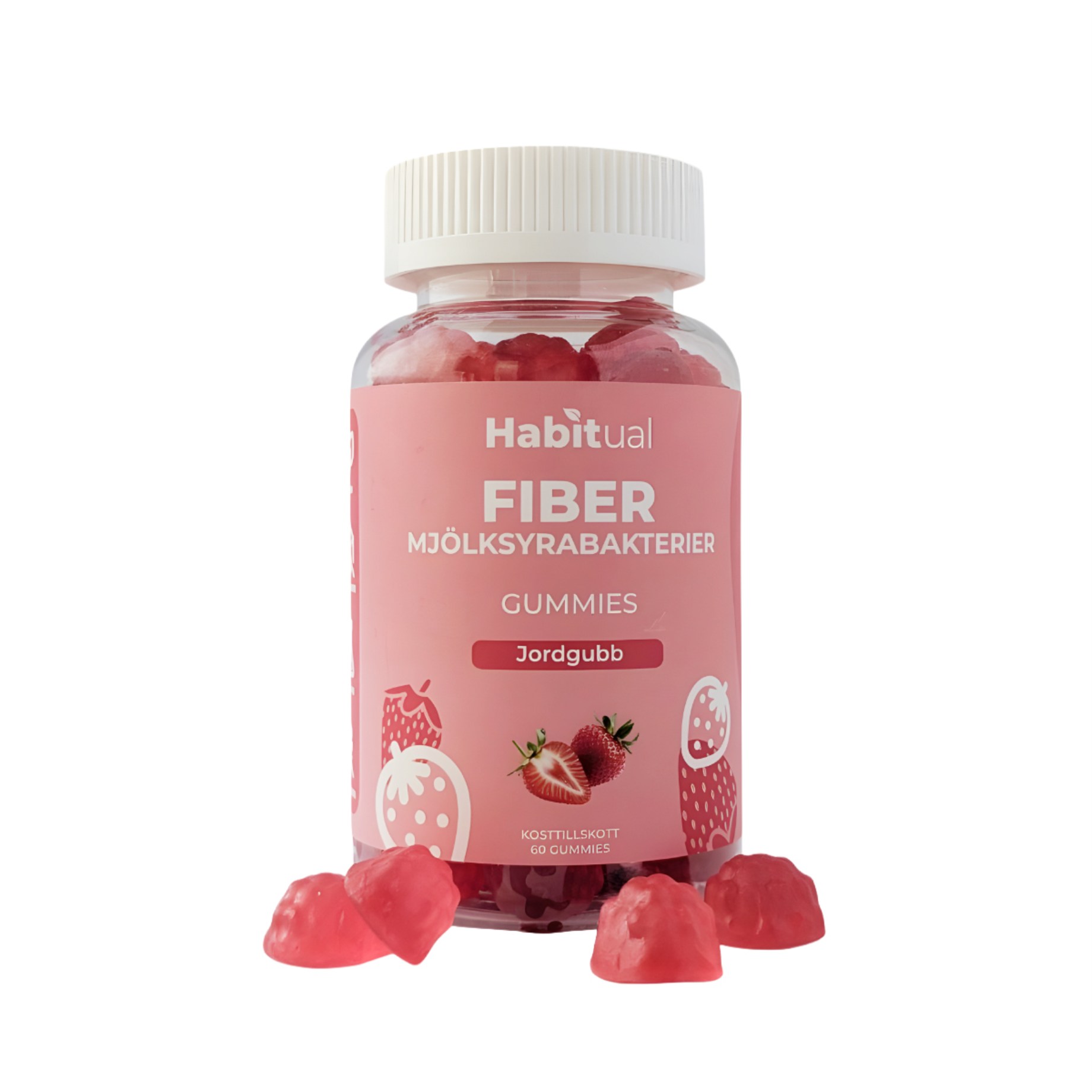 Habitual Fiber/Mjölksyrabakterie Gummies är jordgubbssmakande, sockerfria gummies med kostfiber och inaktiverad mjölksyrabakteriemix för dig som vill ge extra stöd åt tarmfloran och matsmältningen. En till två jordgubbssmakande gummies per dag är ett enkelt sätt att få i sig fibrer och mjölksyrabakterier.
