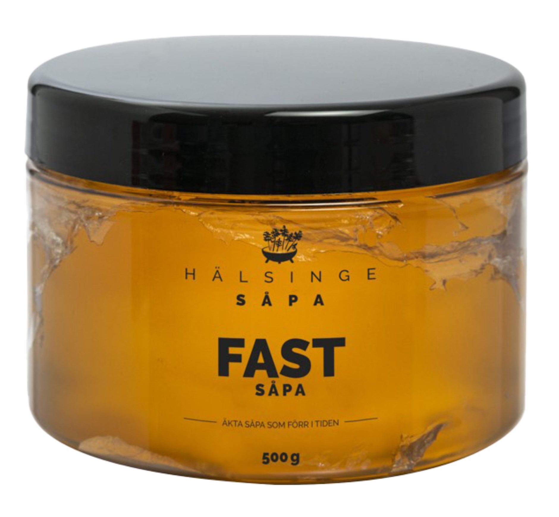 Hälsingesåpa Fast Såpa är en fast, oparfymerad såpa som tillverkas på traditionellt vis i Bjuråker i Hälsingland. Denna såpa innehåller mer än 60 % förtvålad tallolja och är därför mycket fet. Utmärkt till rengöring av t.ex. ugn, kakelfogar eller för att skura mattor. Du kan också späda ut den i vatten genom att ta en knapp matsked till 5 liter varmt vatten. Skonsamt, effektivt och miljövänligt!