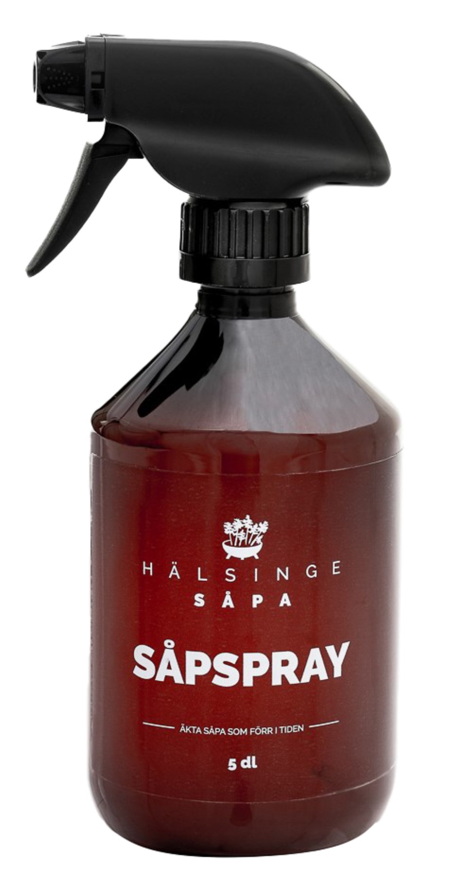 Med Hälsingesåpa Såpspray kan du rengöra dina ytor på ett naturligt och skonsamt sätt. Denna spray innehåller 5 % äkta såpa från Hälsingesåpa, traditionellt tillverkad på gammaldags vis och helt utan tillsatser. Perfekt till alla typer av ytor i hemmet. Blanka ytor såsom kakel, spishäll och speglar torkas med en torr trasa efteråt för bästa resultat. Fungerar även utmärkt att spraya på växter med angrepp av skadedjur!