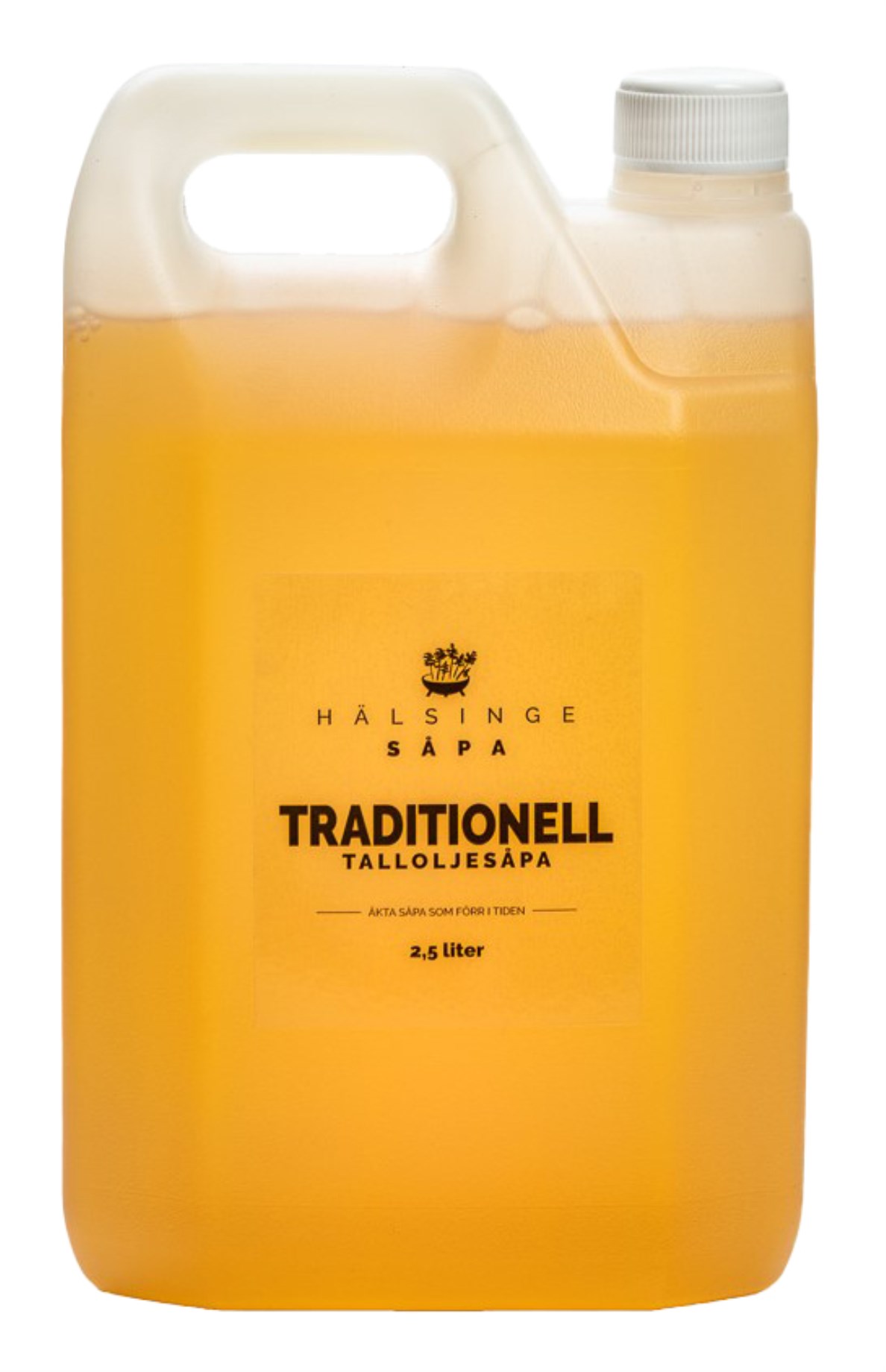 Städa naturligt med Hälsingesåpa Traditionell Talloljesåpa! Denna hemkokta såpa är gjord på tallolja och har en svag doftsättning för den klassiska såpdoften. Förutom att fungera som en skonsam allrengöring i hela hemmet har denna såpa en mängd andra användningsområden. Du kan till exempel tillsätta en mindre mängd i tvättmaskinen för fläckborttagning, använda den till handrengöring eller ha den i ett skönt fotbad. Tack vare det mycket höga fettinnehållet är Hälsingesåpa Talloljesåpa också utmärkt för behandling av bland annat trädäck, trägolv, trämöbler och lister.