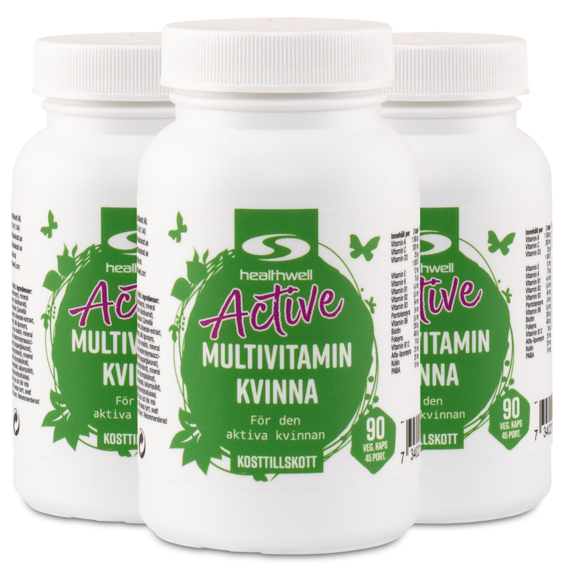 Healthwell Active Multivitamin Kvinna är framtaget för dig som har en aktiv livsstil och vill säkerställa ditt behov av vitaminer och mineraler. Produkten är anpassad efter kvinnans behov och förstärkt med utvalda växtextrakt såsom rödbetsextrakt, nyponextrakt och schisandra.