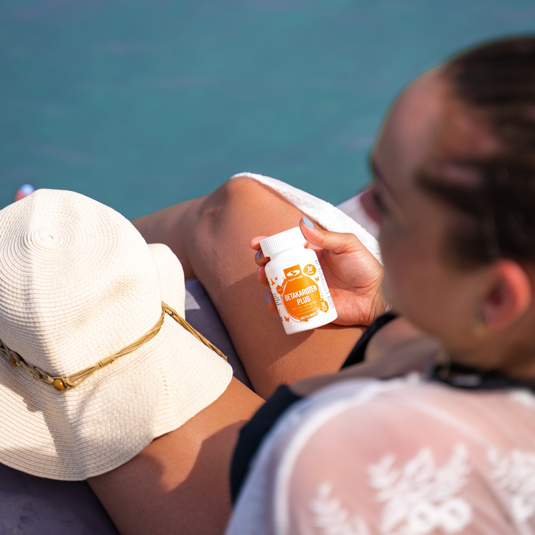 Betakaroten är egentligen ett förstadium till vitamin A, och lagras under huden så att det kan omvandlas till A-vitamin när kroppen är i behov av det. Betakaroten har en lätt brun nyans, vilket uppskattas bland personer som strävar efter att få en snabb och jämn solbrun färg på sommaren. Därför är det så populärt att inta betakaroten innan sommaren, så att lagret av betakaroten är påfyllt under huden. Börja gärna med betakaroten i god tid innan sommaren eller solsemestern eftersom att den högsta effekten nås efter kontinuerlig användning.