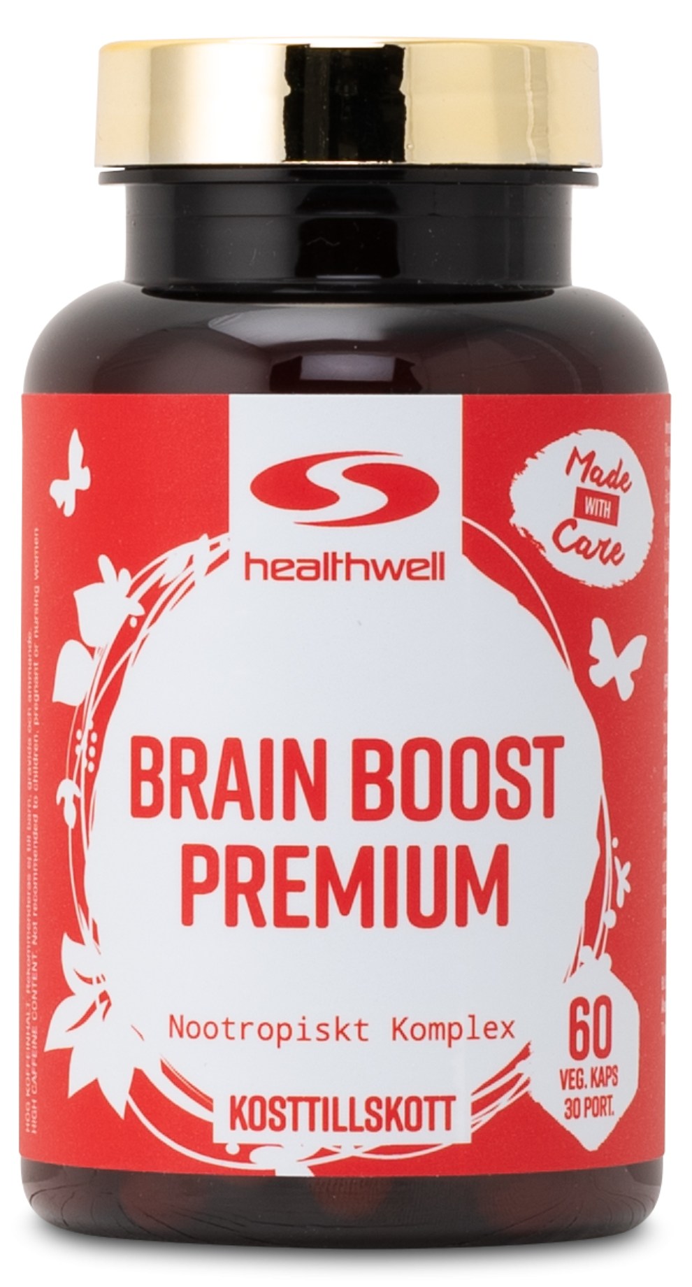 Healthwell Brain Boost Premium innehåller vitamin B6 och jod som bidrar till fokus och mental förmåga*. Vitamin B6 bidrar till den kognitiva förmågan som bland annat innefattar koncentration, inlärning och minne. Brist på vitamin B6 kan leda till nedsatt psykologisk funktion, vilket bland annat kan yttra sig som förvirring. Det kan även leda till symtom som svaghet, trötthet och utmattning(1). Jod bidrar till normal kognitiv och neurologisk funktion, och brist på ämnet kan bland annat leda till nedsatt mental funktion (2).