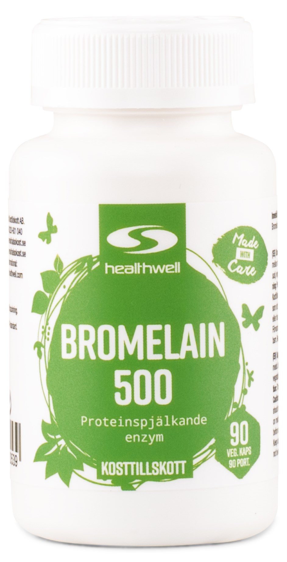 Bromelain 500 från Healthwell är extra starka enzymkapslar med enzym från ananas. Enzymer hjälper till vid matsmältningsprocessen där de bryter ned maten vi äter till mindre beståndsdelar. En kapsel innehåller 500 GDU bromelain.