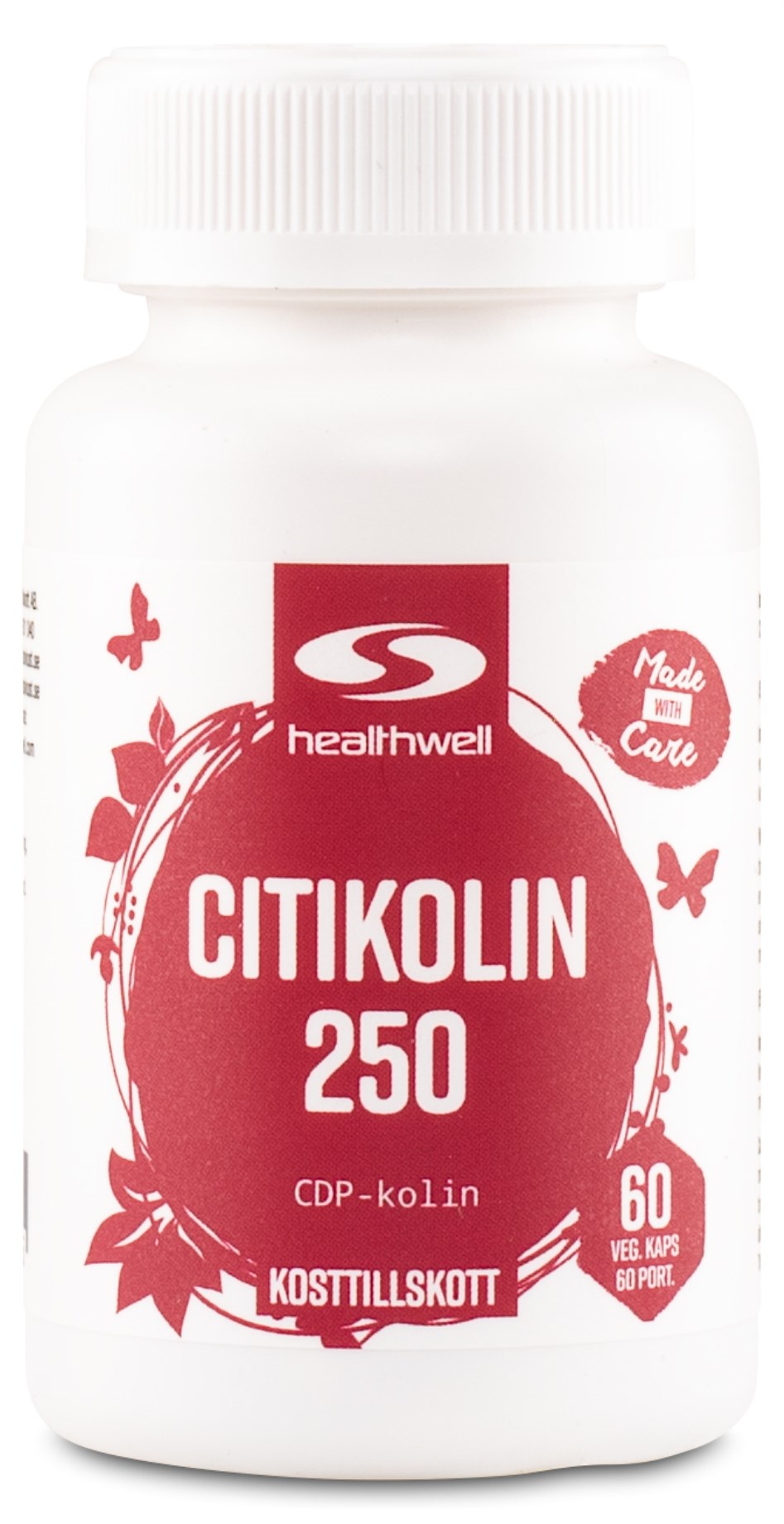 Healthwell Citikolin 250 är kapslar med det speciella ämnet citikolin. Citikolin kallas även CDP-kolin och består av kolin och cytidin tillsammans. Kolin bidrar bland annat till normal leverfunktion och normal homocystein metabolism. Citikolin 250 från Healthwell innehåller hela 250 mg CDP-kolin per kapsel.