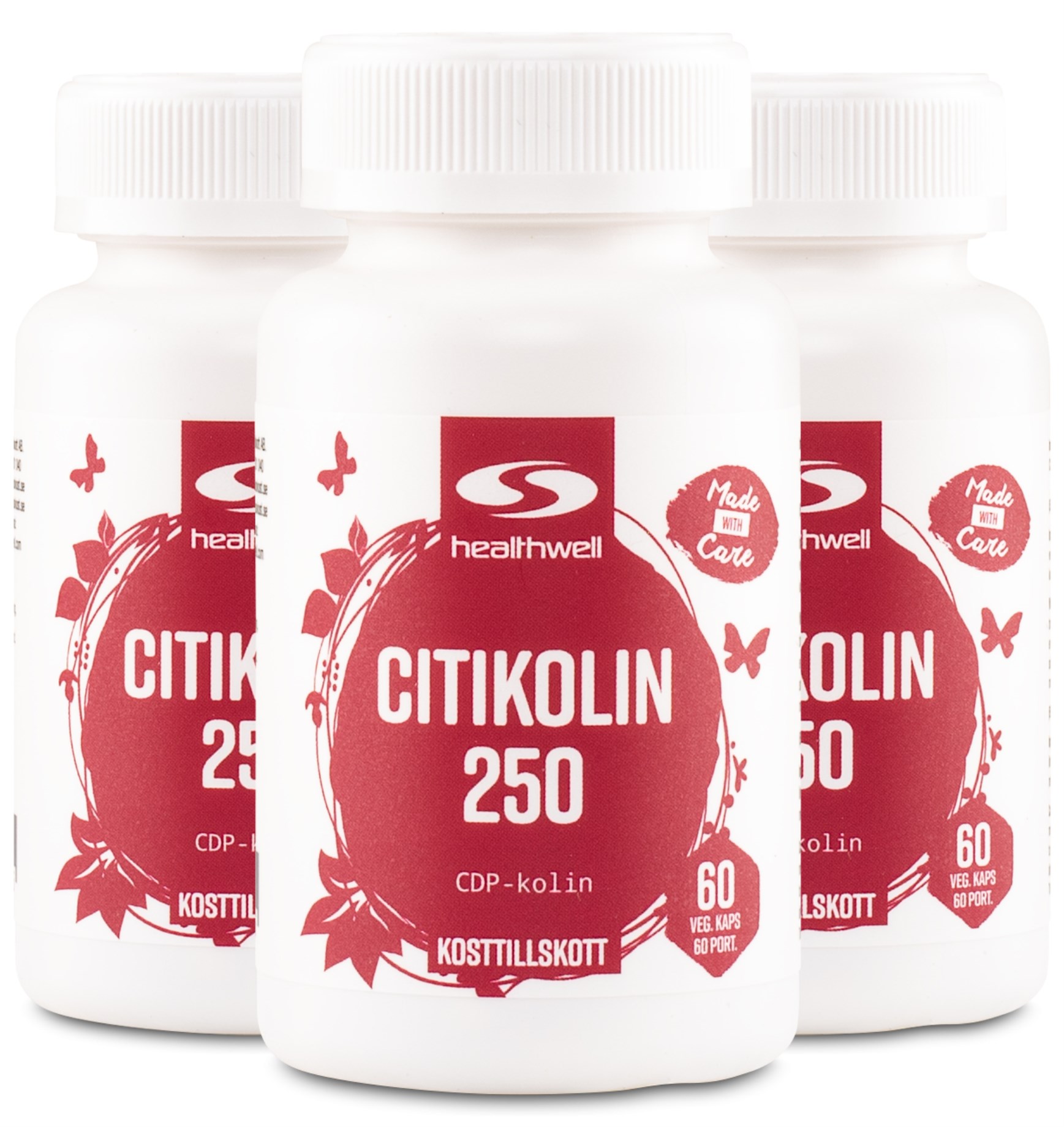 Healthwell Citikolin 250 är kapslar med det speciella ämnet citikolin. Citikolin kallas även CDP-kolin och består av kolin och cytidin tillsammans. Kolin bidrar bland annat till normal leverfunktion och normal homocystein metabolism. Citikolin 250 från Healthwell innehåller hela 250 mg CDP-kolin per kapsel.