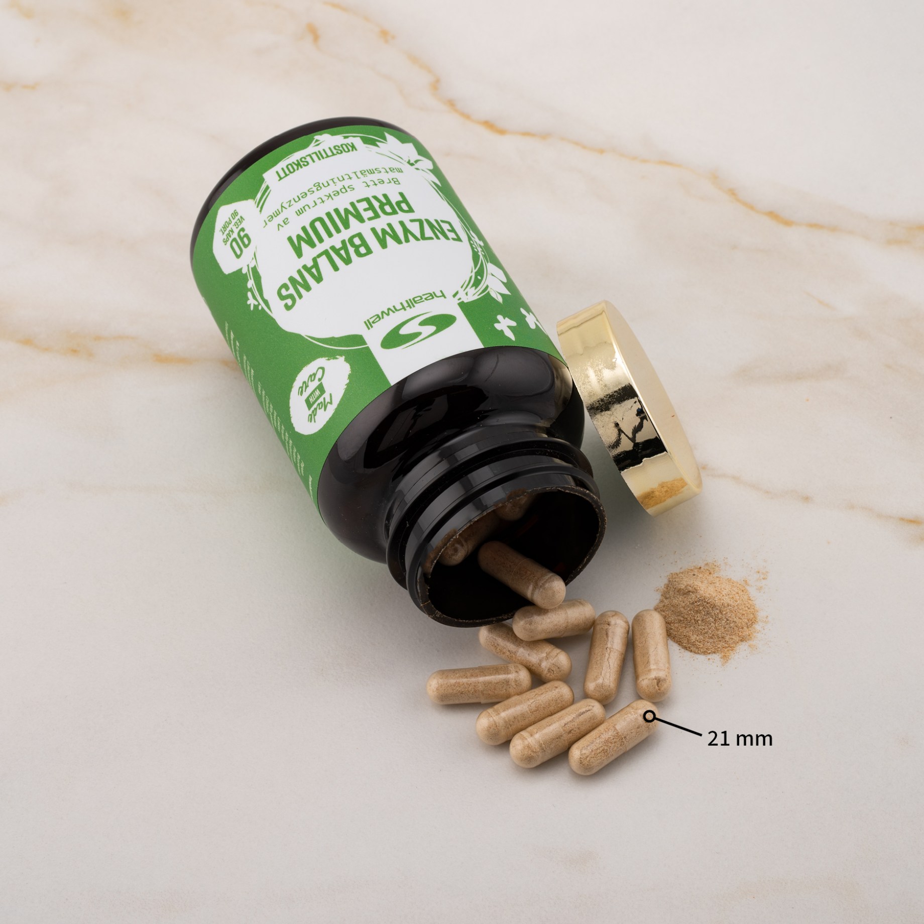 Healthwell Enzym Balans Premium hjälper dig att stötta matsmältningen.