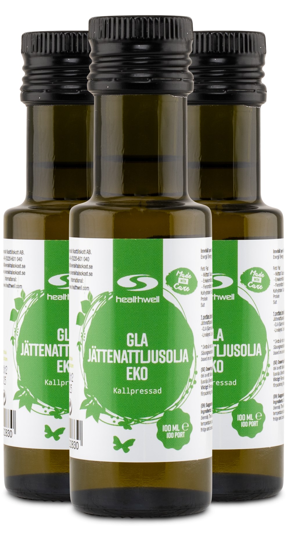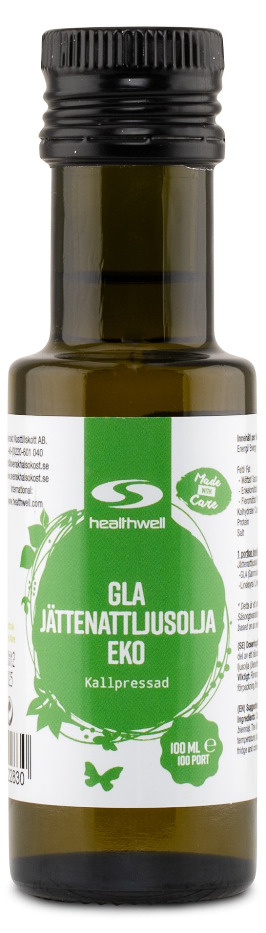 Healthwell GLA Jättenattljusolja EKO kommer från fröna från den gula örtväxten. Fröna kallpressas varsamt utan tillsatser, i låg temperatur för att inte förlora dess effekt och viktiga näringsämnen. GLA Jättenattljusolja EKO är naturligt rikt på GLA och linolsyra som är två omättade fettsyror från omega-6. Linolsyra är en essentiell fettsyra som måste tillföras via kosten, då kroppen inte kan producera fettsyran själv.