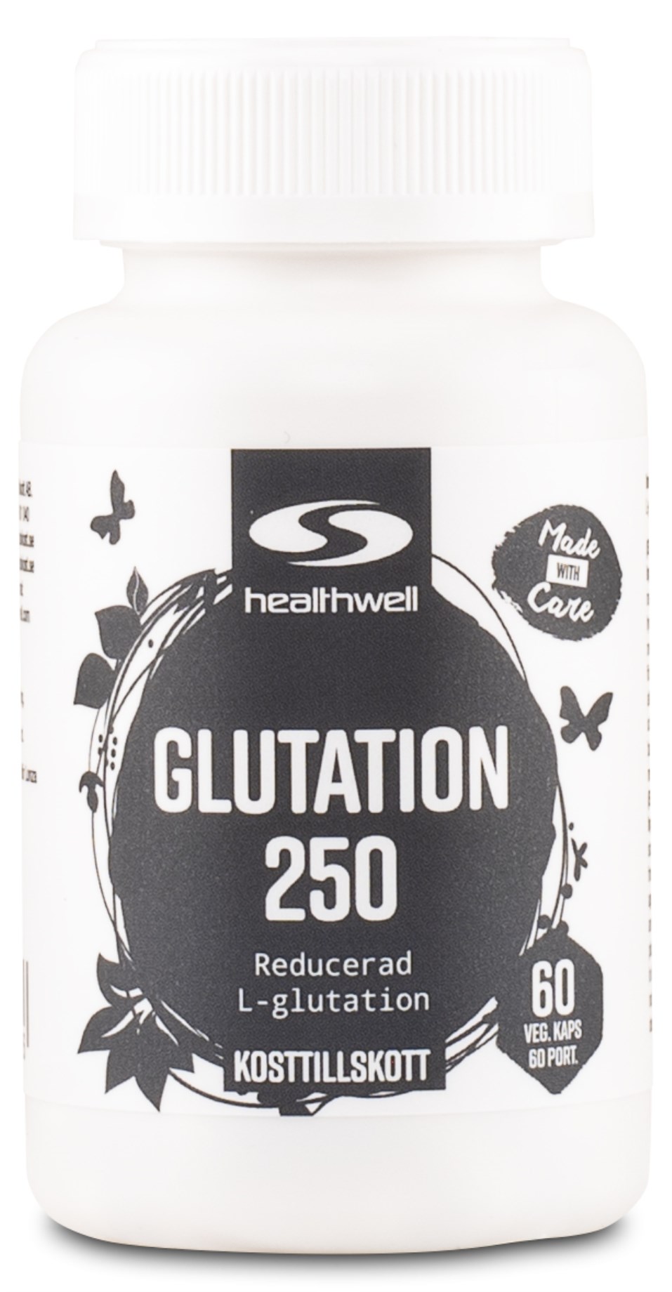 Healthwell Glutation 250 säkerställer ditt intag av glutation, ett ämne med kraftfullt antioxidativa egenskaper. Glutation bildas naturligt i cellerna och stöttar kroppens immunsystem, även aktivering och funktion hos flera andra antioxidanter, så som C-vitamin, E-vitamin, Q10 och ALA. I tider där kroppen utsätts för mycket stress kan bildningen av glutation avta. Säkerställ dina glutationnåvåer med ett extra intag. Healthwell Glutation 250 innehåller veganska och syraresistenta kapslar för att ämnet ska klara sig genom magsäcken utan att bli förstört.