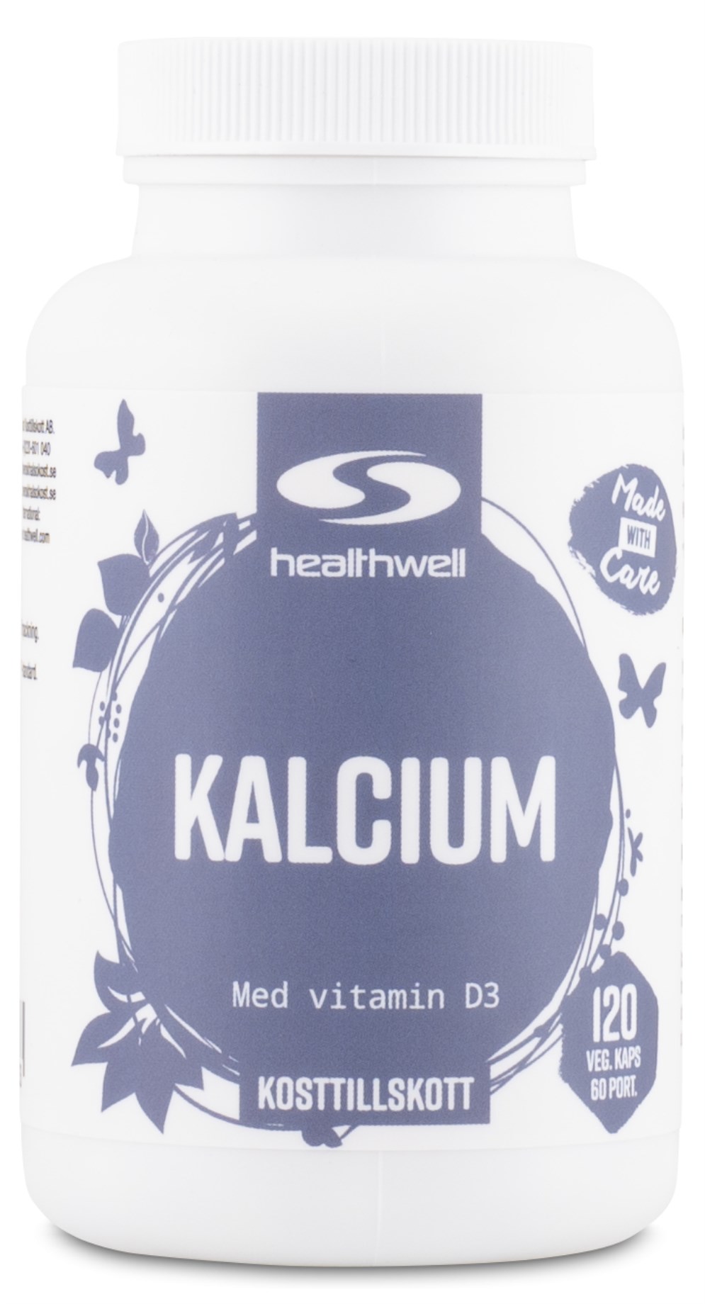 Healthwell Kalcium är ett kalciumtillskott med 800 milligram kalciumcitrat per dos, med en elementär mängd på 336 milligram (den mängd kroppen tillgodogör sig). Kalciumcitrat har en hög biotillgänglighet i kroppen och är därför en högkvalitativ form av kalcium i tillskott. Healthwell Kalcium är dessutom förstärkt med vitamin D, som hjälper till vid upptaget av kalcium i kroppen, för maximal effekt. Healthwell Kalcium kommer i vegetabiliska och lättsvalda kapslar. Två kapslar om dagen räcker för att säkerställa intaget av detta viktiga mineral.