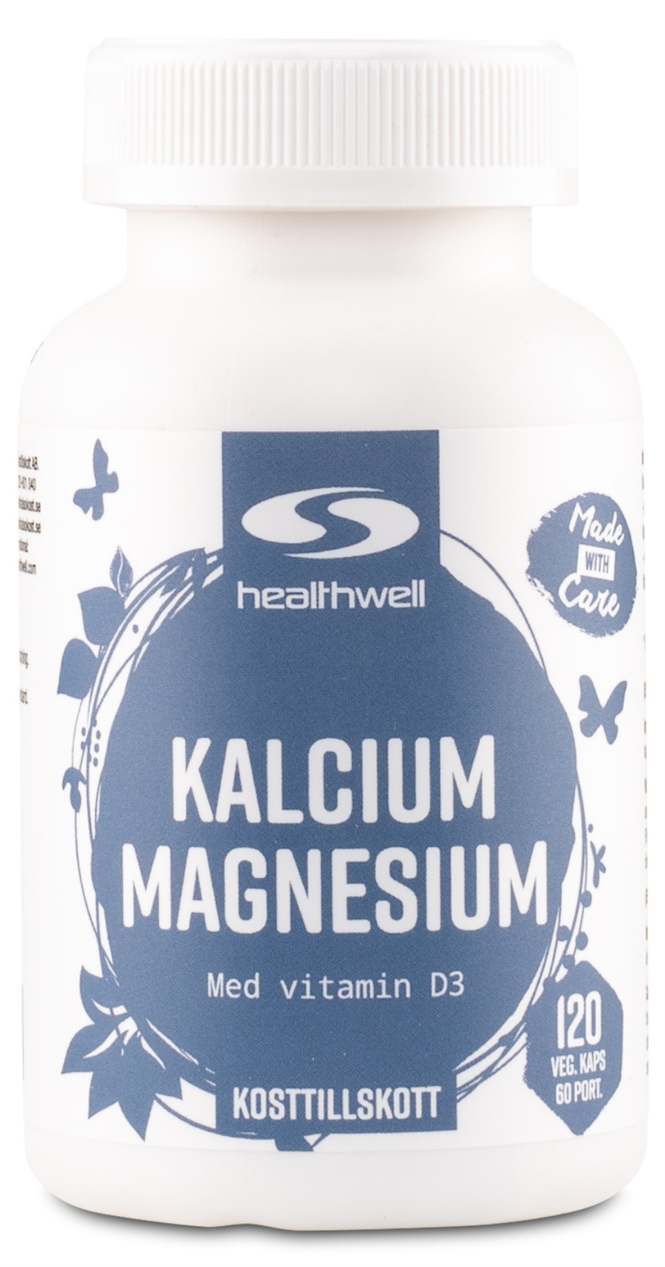 Kapslarna från Healthwell innehåller två varianter av mineralerna kalcium och magnesium som har en god upptagningsförmåga i kroppen. Kalciumbehovet är något högre än magnesiumbehovet, och balansen mellan mineralerna är viktig. Healthwell Kalcium/Magnesium innehåller därför en tredjedel mer kalcium än magnesium. För att optimera upptaget finns även vitamin D eftersom vitaminen har en avgörande betydelse för hur mycket kalcium kroppen kan absorbera.