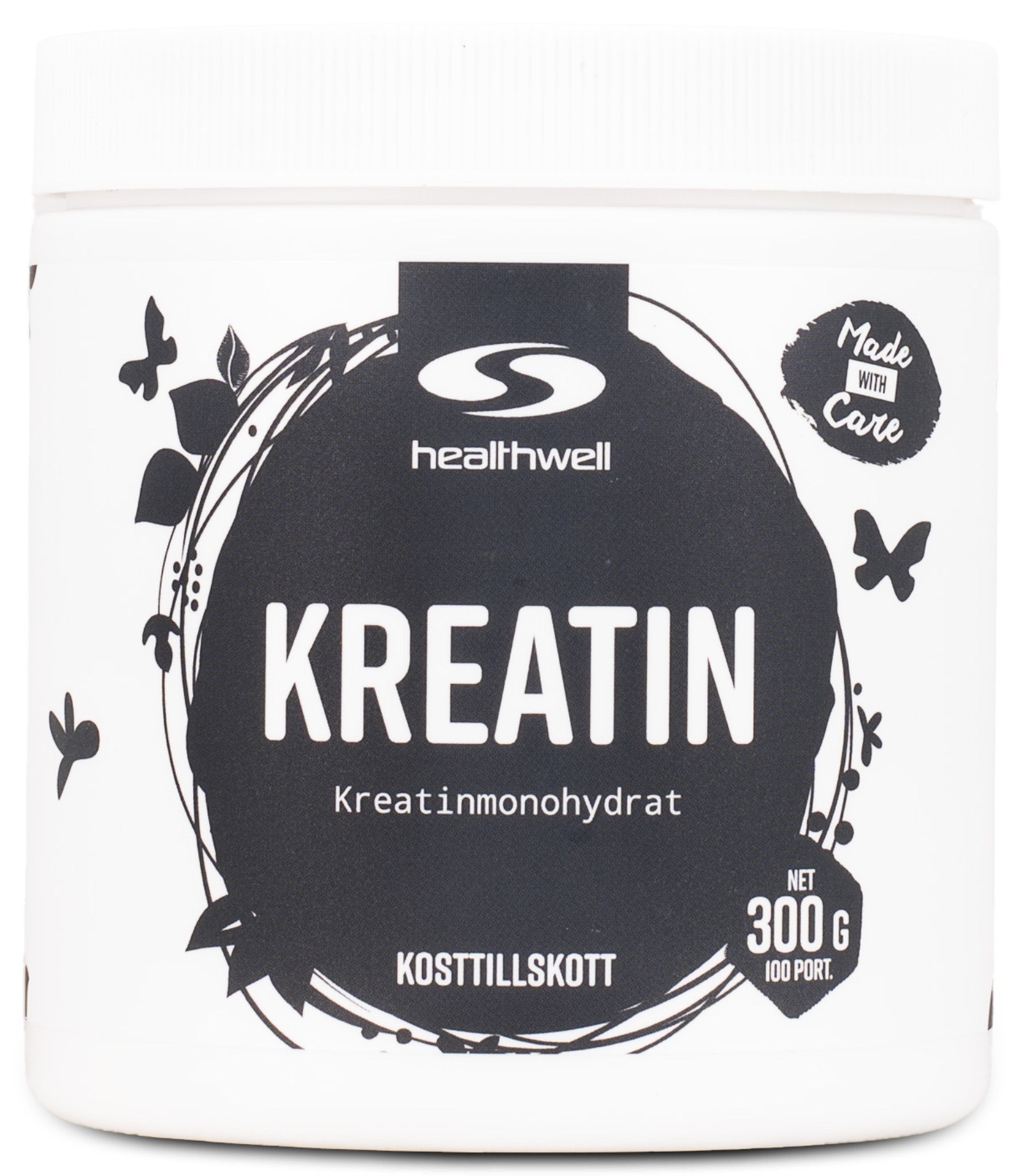 Kreatin är ett välstuderat ämne som även finns naturligt i kroppen och i maten vi äter. Kreatin har bevisats kunna öka den fysiska prestationsförmågan vid kortvarig och högintensiv träning (1). Det kan märkas vid träningsstart eller intensitetshöjning såväl vid tunga styrkelyft och vid konditionskrävande träning. Den gynnsamma effekten får man genom att äta minst tre gram kreatin per dag, och med Healthwell Kreatin doserar du 3-6 gram per portion.