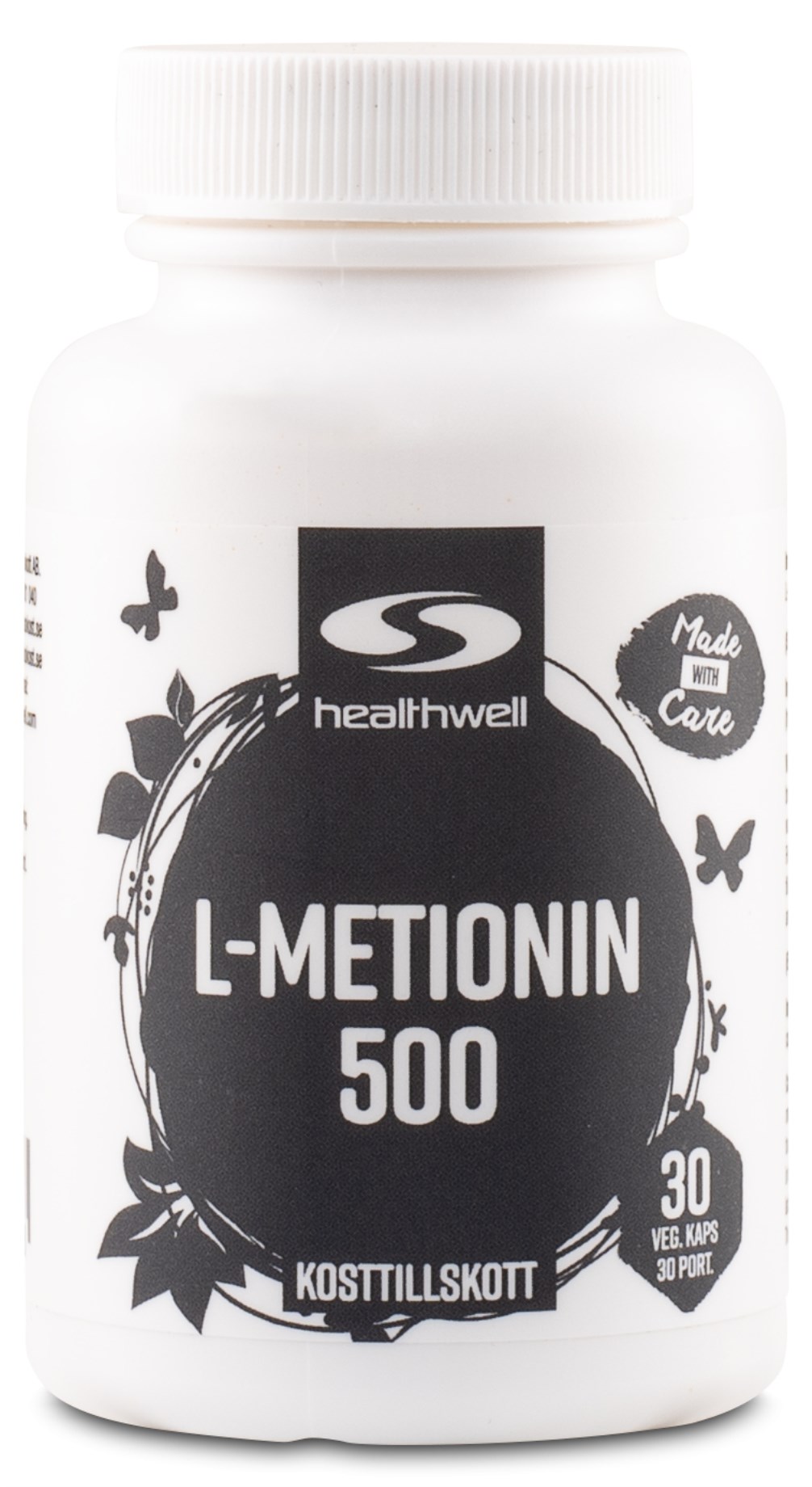Healthwell L-metionin är ett tillskott i ren form med aminosyran L-metionin. L-metionin som ämne är verksamt på det sättet att det hjälper till att bygga upp hår, hud och naglar. Dessutom hjälper det till med att reparera celler och att bygga upp hormoner och enzymer. Visste du att metionin bland annat hjälper till vid upptaget av selen i kroppen? Om du dagligen äter selentillskott är metionin därför perfekt att kombinera med!