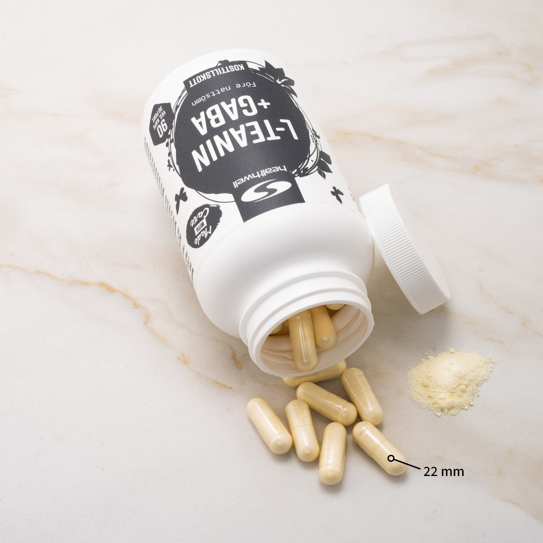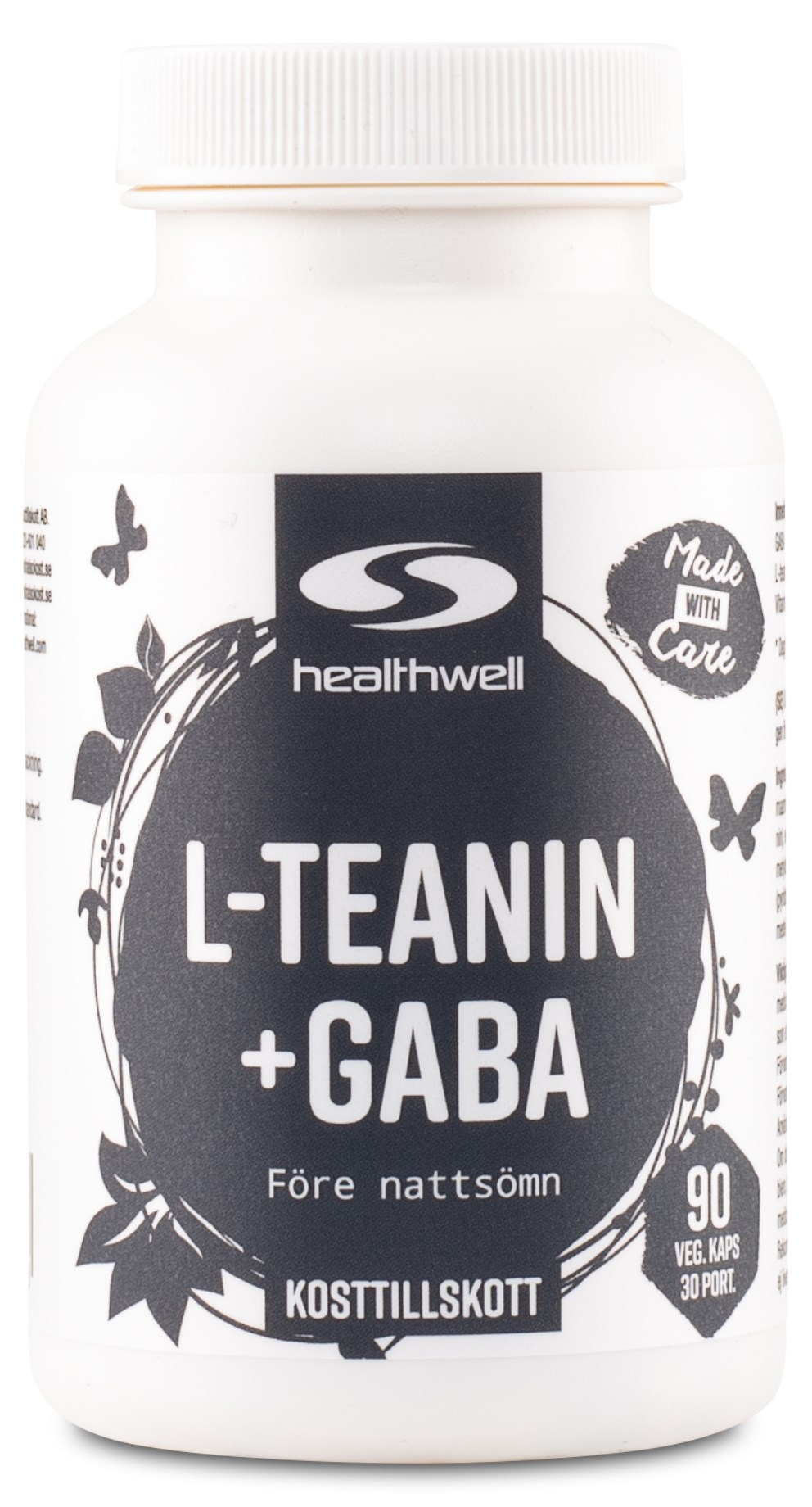 Healthwell L-teanin och GABA är ett kosttillskott som innehåller de spännande ingredienserna L-teanin och GABA i praktiska vegetabiliska kapslar. L-teanin är en aminosyra som naturligt återfinns i grönt te, medan GABA (gammaaminosmörsyra) fungerar som en lugnande signalsubstans i nervsystemet. Dessa ämnen kompletterar varandra väl och forskning visar att de kan vara särskilt effektiva när de används tillsammans. Healthwell L-teanin + GABA innehåller även vitamin B6, som stödjer nervsystemets funktion. En dos (3 kapslar) ger totalt 1600 mg GABA och 400 mg L-teanin, och rekommenderas att tas innan sänggåendet.