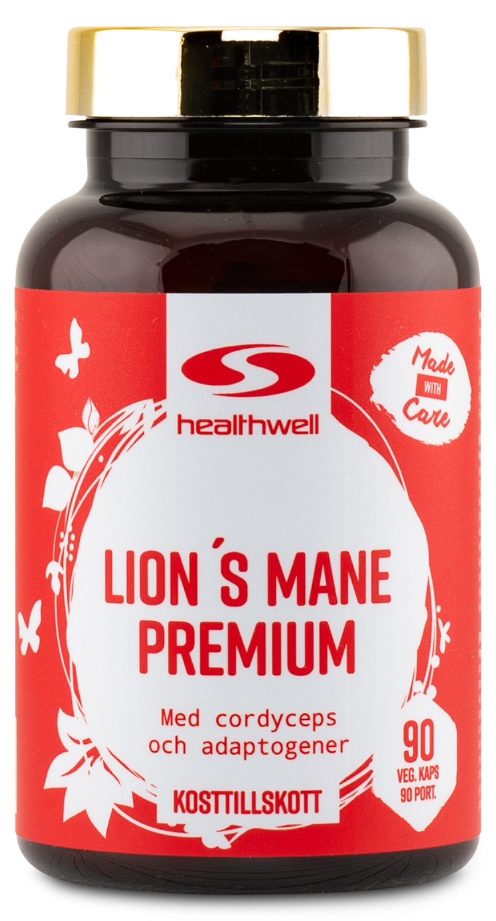 Lions Mane (Hericium erinaceus) kallas även yamabushitake eller igelkottaggsvamp på svenska, och dess namn kommer från dess unika och taggiga utseende. Lions Mane har en traditionell användning tack vare sina omtalade egenskaper. Healthwell Lions Mane Premium innehåller ett högkoncentrerat extrakt från fruktkropp, med 25 % betaglukaner som anses vara en bra måttstock för svampens funktion och effekt. Lions Mane har även ett rikt innehåll av antioxidanter. Lions Mane brukar räknas som nootropikum, vilket är växter som innehåller ämnen som anses kunna påverka vår mentala funktion.