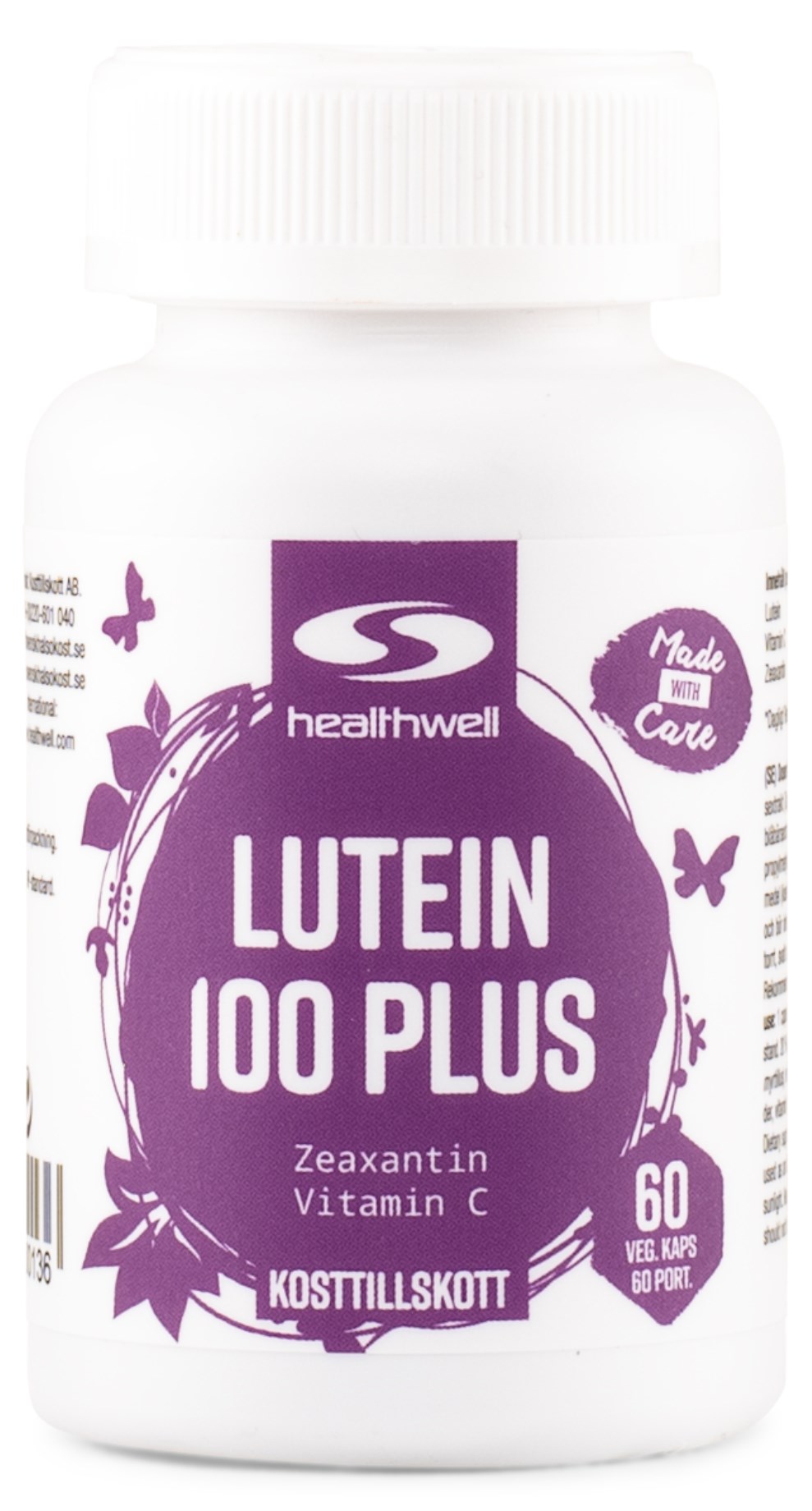 Lutein är en så kallad karotenoid, vilket är ett slags provitamin som vid behov kan omvandlas till vitamin A. Det finns olika typer av karotenoider, och lutein tillhör undergruppen xantofyller, en sort som främst finns i ögat hos människor samt vissa djur. Lutein förekommer till exempel i hög koncentration i gula fläcken på det mänskliga ögats näthinna. Lutein förekommer dessutom naturligt i flera livsmedel som till exempel ringblomma, blåbär, grönkål och broccoli. Luteinet i Healthwell Lutein 100 Plus kommer från ringblomma (Tagetes erecta) samt blåbär. Här ingår även zeaxantin, som även det är en karotenoid som förekommer naturligt i ögats gula fläck.