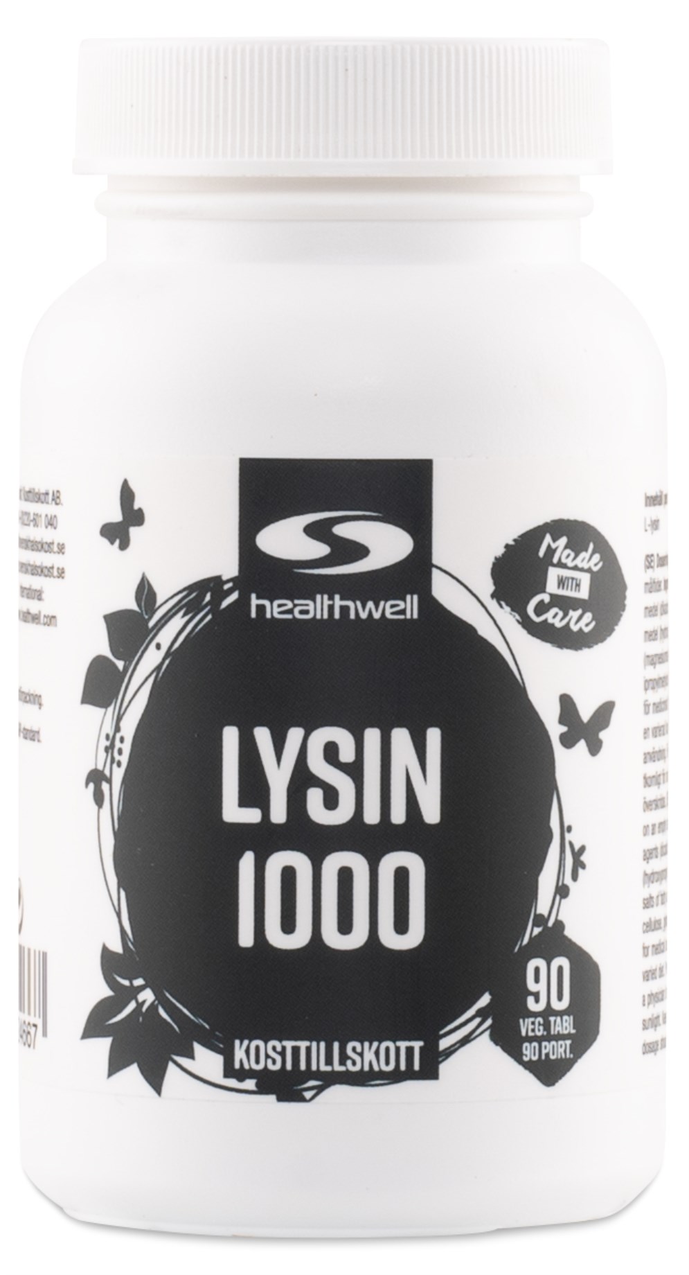 Healthwell Lysin 1000 är ett tillskott med aminosyran lysin i extra högdoserad form. Aminosyror fungerar som byggstenar för protein och lysin är särskilt delaktig i uppbyggnaden av kollagen, vilket bygger upp vävnader som hud, hår och brosk. Dessutom är lysin en essentiell aminosyra, vilket betyder att kroppen måste ha den för att fungera normalt men att den måste tillföras via kosten. Icke-essentiella aminosyror kan kroppen producera själv under normala förutsättningar. Healthwell Lysin 1000 innehåller 1000 mg lysin per tablett i en extra lättupptaglig form för att ge så god effekt som möjligt. Det rekommenderade intaget är 1-2 tabletter per dag, och du kan välja att ta den på tom mage eller tillsammans med måltid.
