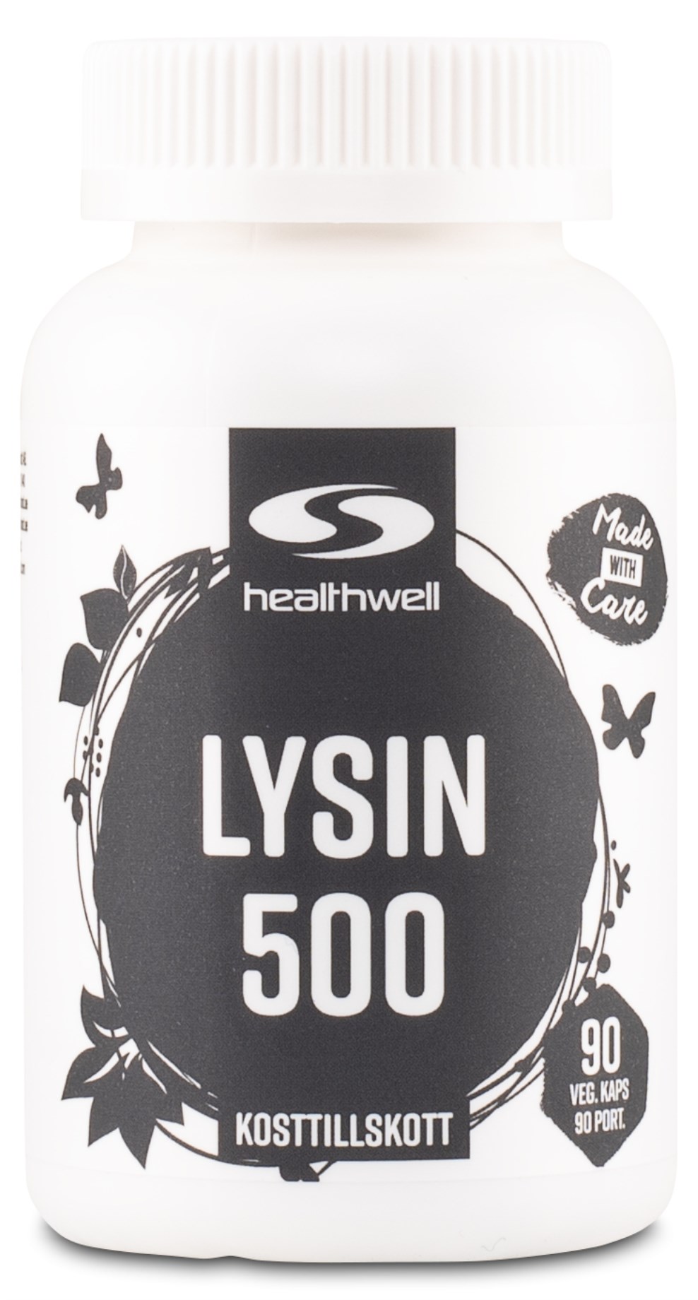 Healthwell Lysin 500 är ett tillskott med aminosyran lysin i fri form. Lysin är en essentiell aminosyra, vilket betyder att vår kropp måste ha den för att fungera normalt. Lysin ingår i kollagenprotein, som ansvarar för att upprätthålla såväl leder som hår och hud. Lysin fungerar även som en förelöpare till aminosyran karnitin, som ingår i fettförbrännande processer. Healthwell Lysin 500 innehåller 500 mg som lätt tas upp av kroppen.
