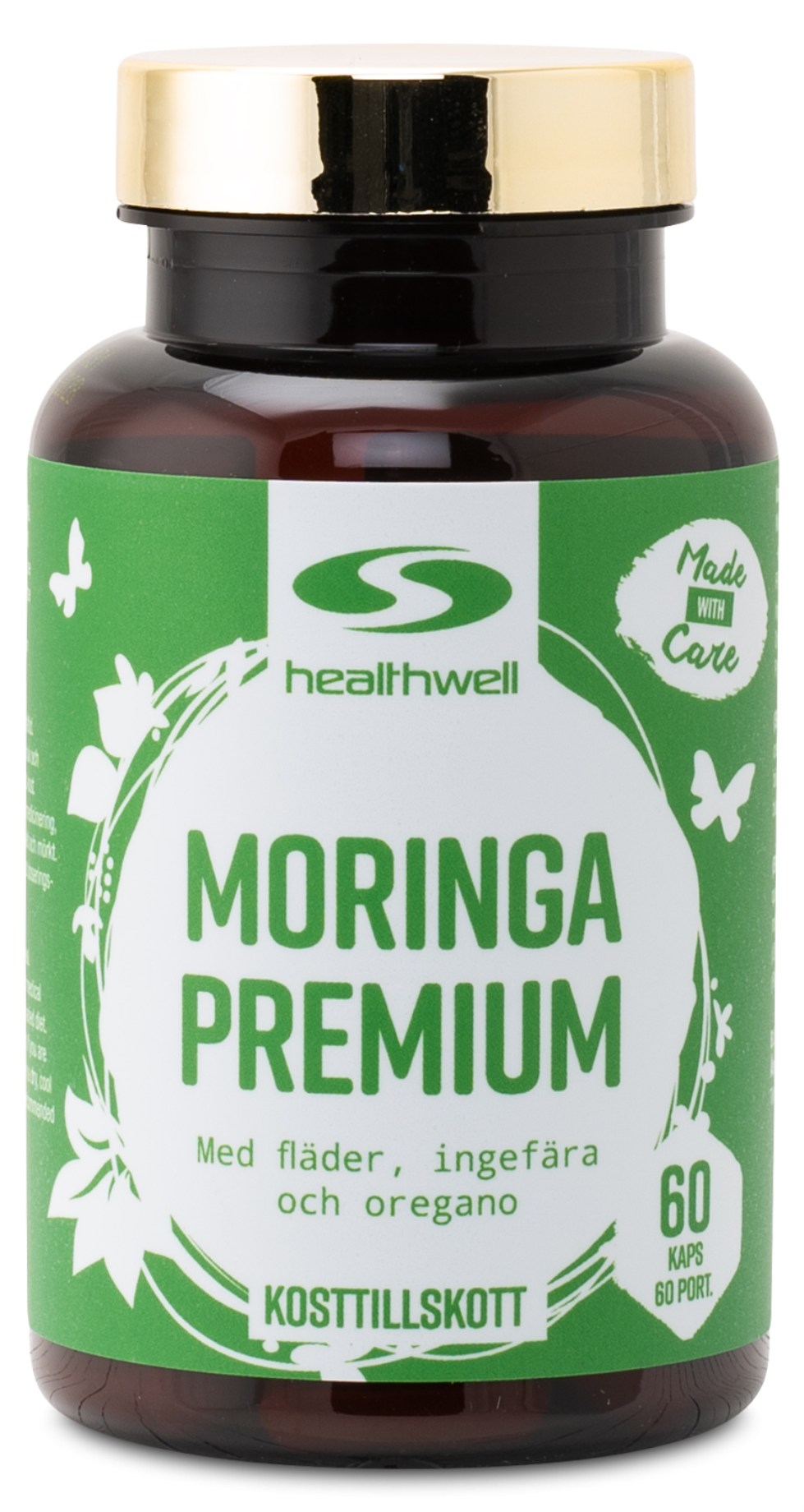 Healthwell Moringa Premium är ett extra högdoserat tillskott med moringa av högsta kvalitet. En kapsel motsvarar hela 5 gram moringapulver, vilket ger dig en riktigt bra portion moringa i varje dosering. Moringaextraktet är standardiserat till 5 % quercetin – ett intressant ämne som kan bidra till att kroppen lättare kan ta upp mineralet zink. För att du ska få en näringsboost utöver det vanliga ingår även extrakt från oregano, fläderbär och ingefära – välkända örter som används flitigt i huskurer och studeras för sina potentiella roller inom immunförsvaret. För att du ska få de allra bästa förutsättningarna att ta upp det näringstäta innehållet i Healthwell Moringa Premium, är kapslarna förstärkta med piperin från svartpepparextrakt som förbättrar biotillgängligheten av ämnena.