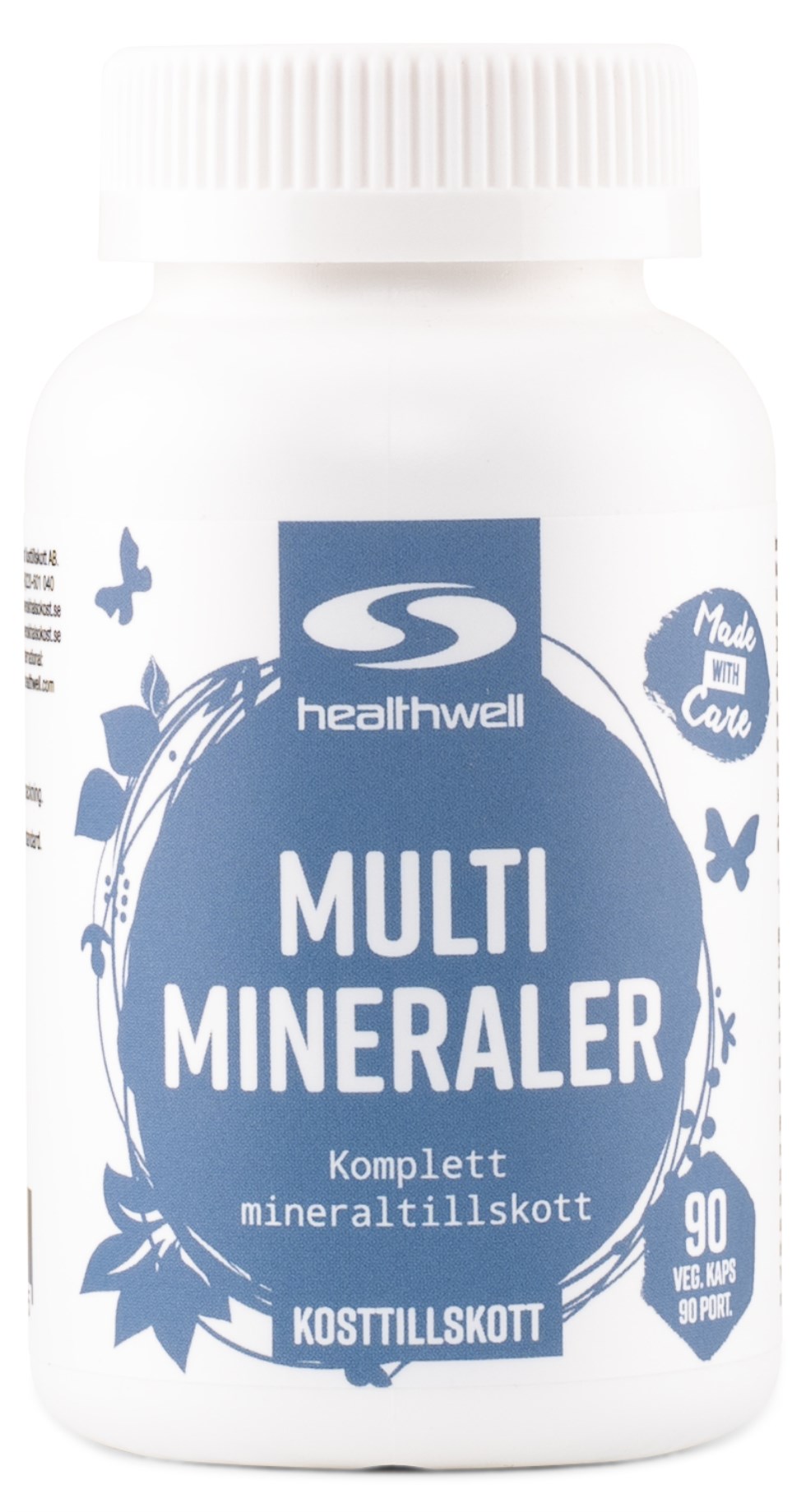 Säkerställ ditt dagliga mineralintag med Healthwell Multimineral. Ett mineralkomplex med alla viktiga mineraler i framstående, biotillgängliga former och välbalanserad dos. Här ingår bland annat magnesium, kalcium, zink och jod tillsammans med åtta andra mineraler och spårämnen som är livsviktiga för att flera av kroppens funktioner ska fungera optimalt. Rekommenderad dosering är 1-2 kapslar per dag.