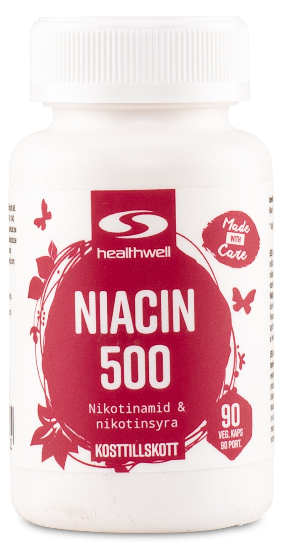 Healthwell Niacin 500 är ett kosttillskott med så mycket som 500 mg niacin (vitamin B3) per dos. I detta tillskott förekommer niacinet i form av nikotinsyra och nikotinamid, som kan intas i större mängder utan att man får så kallade flushes. Reaktionen på flushes kännetecknas av en brännande, het eller stickande känsla i ansiktet och på bröstet samt en röd eller flammande hud. Denna reaktion är dock normalt sett ofarlig och övergående. Men med Niacin 500 slipper du oroa dig för denna effekt.