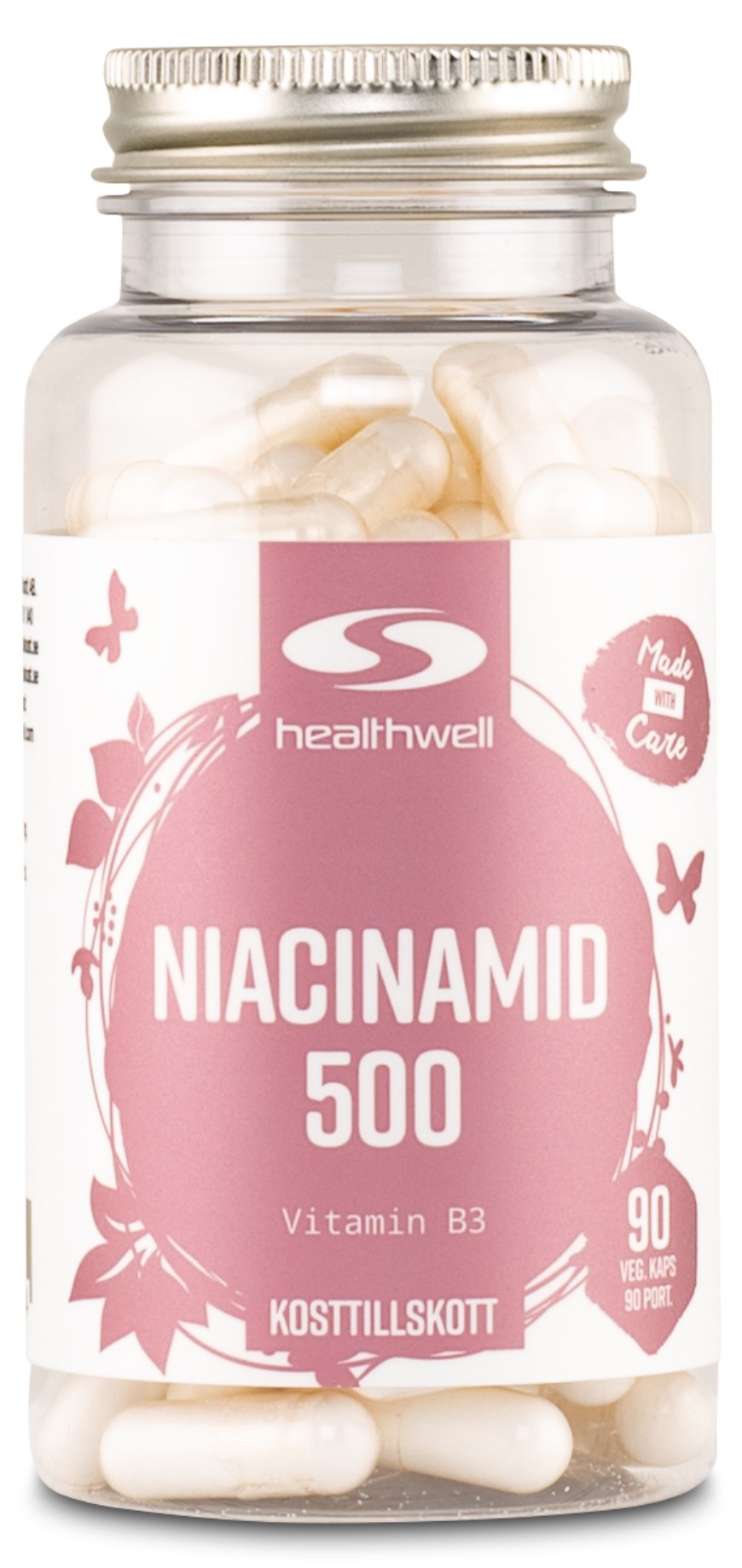 Bry dig lite extra om ditt hår, din hud och dina naglar. Niacinamid 500 från Healthwell är kapslar fulla med niacinamid som är en form av niacin, alltså vitamin B3. Nacinamid ingår ofta i skönhetstillskott då det är ett näringsämne med flertalet positiva effekter som bland annat bidrar till normal hud.