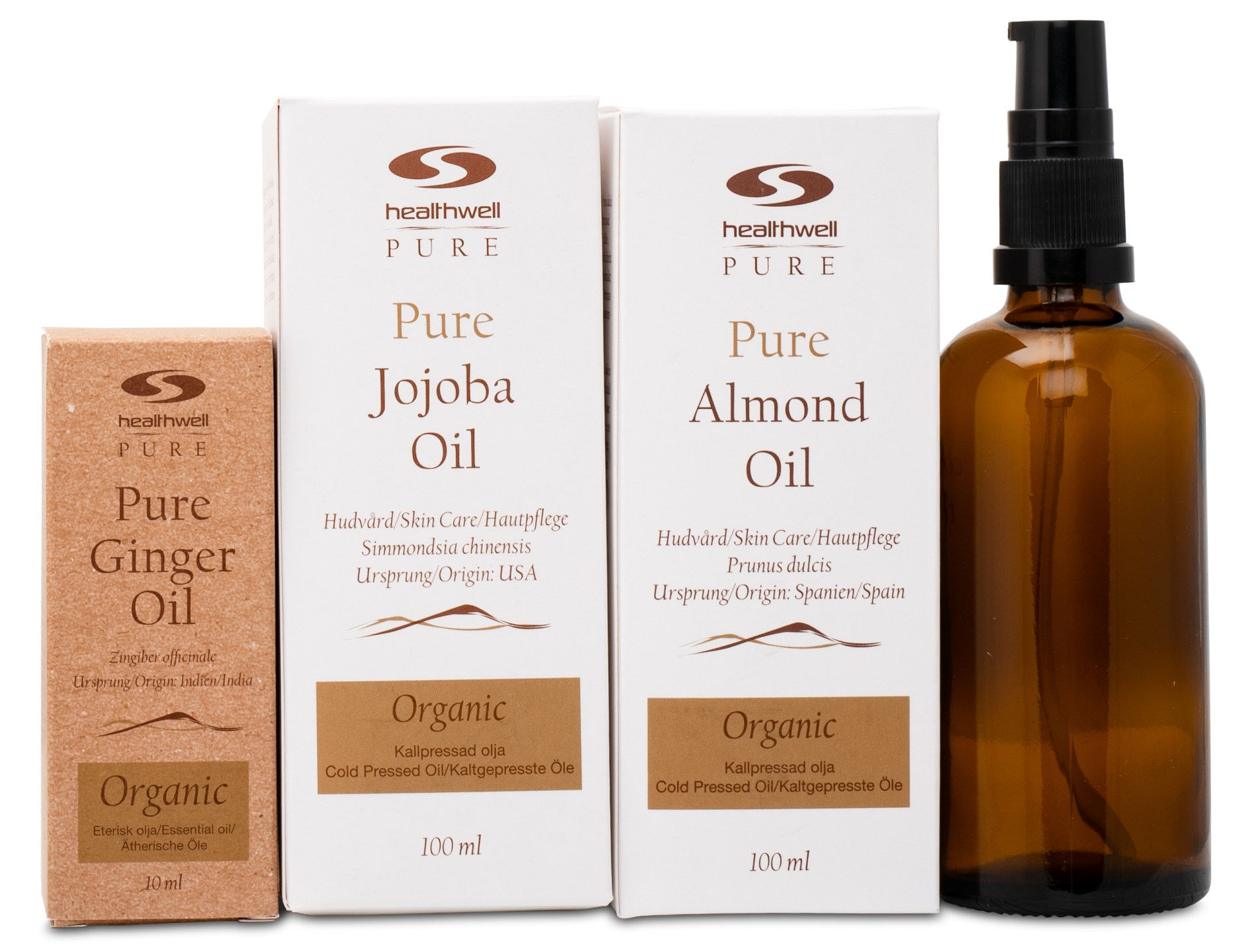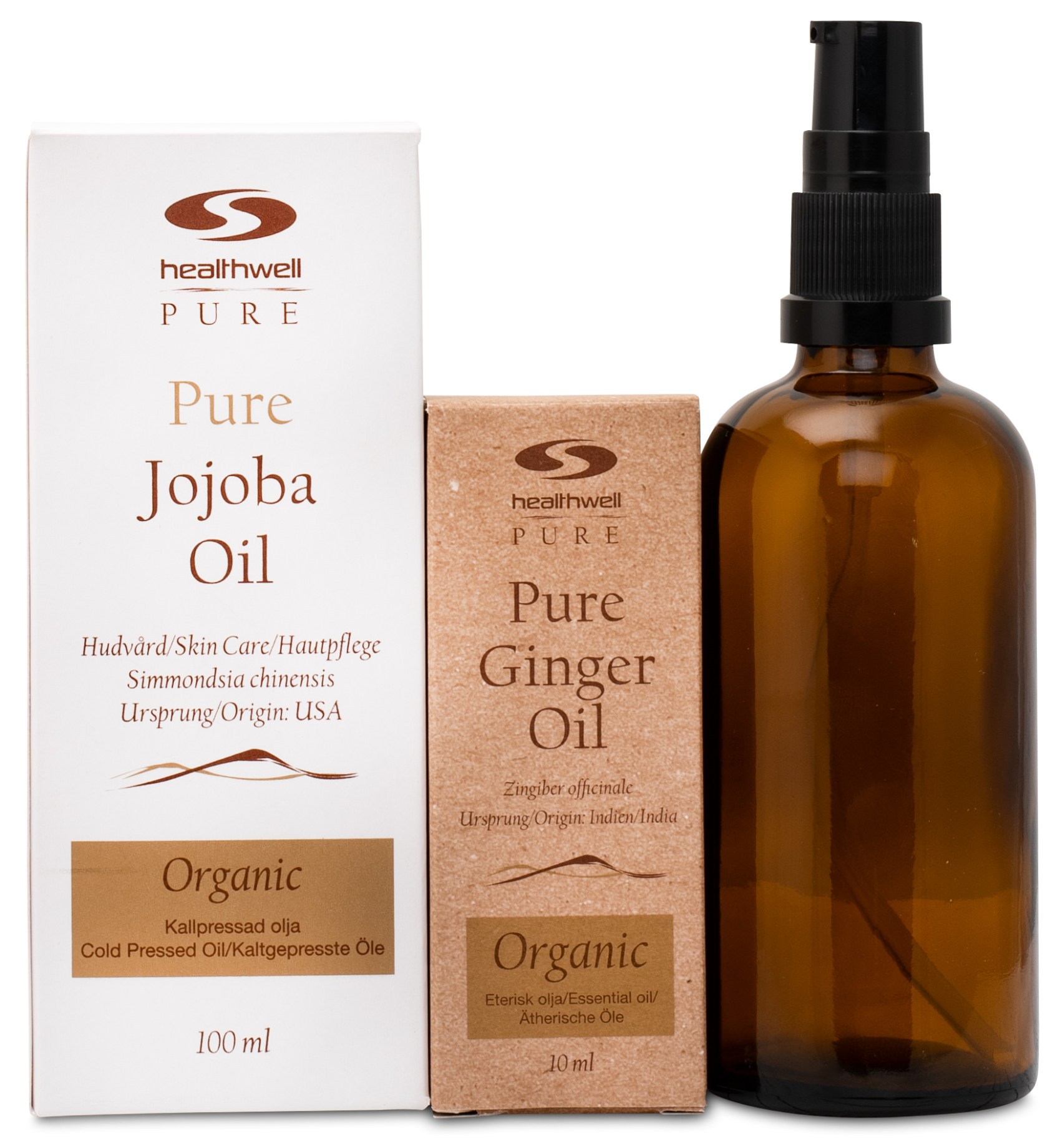 • Mandelolja, jojobaolja och eterisk ingefärsolja