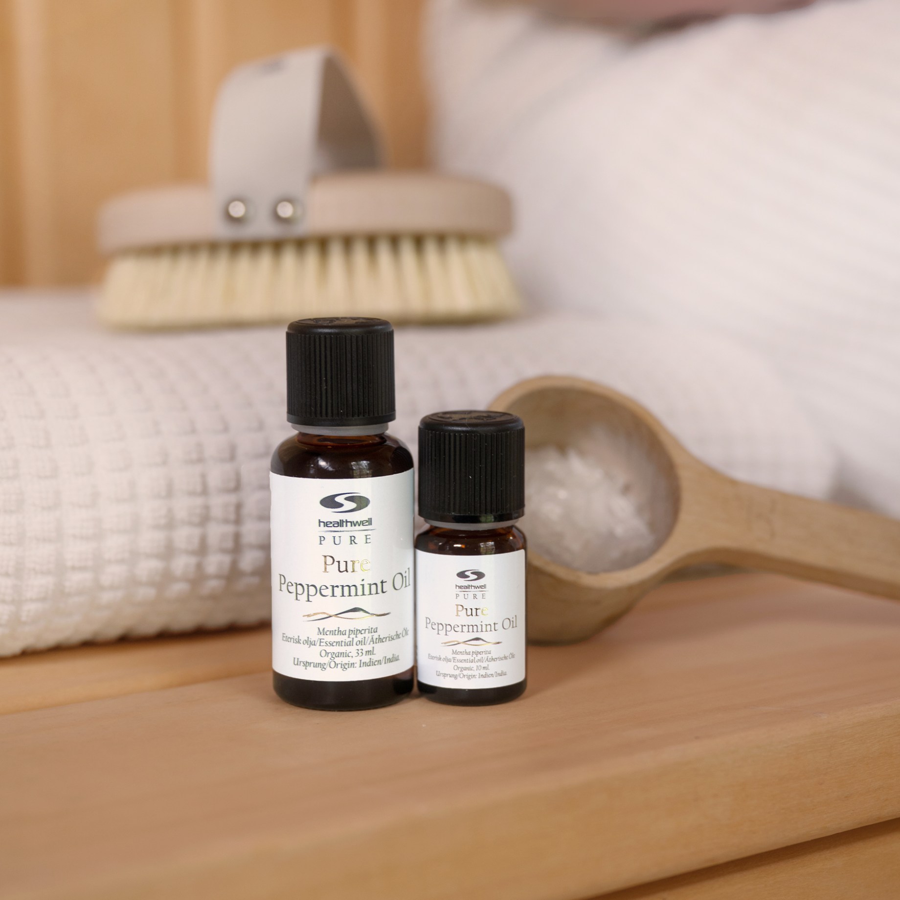 PURE Pepparmyntsolja EKO är en eterisk olja av ekologisk pepparmynta. Oljan framställs mycket varsamt genom ångdestillering av bladen från Mentha piperita för att ge en olja av allra högsta kvalitet och koncentration. PURE Pepparmyntsolja EKO är inte utspädd och är fri från tillsatser vilket gör den till en av de bästa oljorna på marknaden. Pepparmyntsolja är dessutom otroligt doftrik vilket gör att du bara behöver någon enstaka droppe vid varje användning. Blanda pepparmyntsoljan från PURE med valfri basolja för en svalkande hudolja, eller använd i en aromalampa för att sprida en underbart fräsch doft som har undertoner av gräs.
