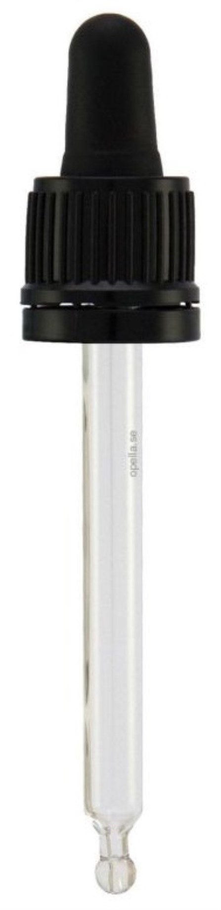 Healthwell PURE Pipett Svart är ett lock som passar till exempelvis Glasflaska Klar och Glasflaska Brun vars hals har en diameter på 18 mm. Pipetten gör det enkelt att dosera den vätska som du förvarar i flaskan utan att riskera att få ut för mycket. Pipetten är tillverkad i mjuk gummi och har en brytring.