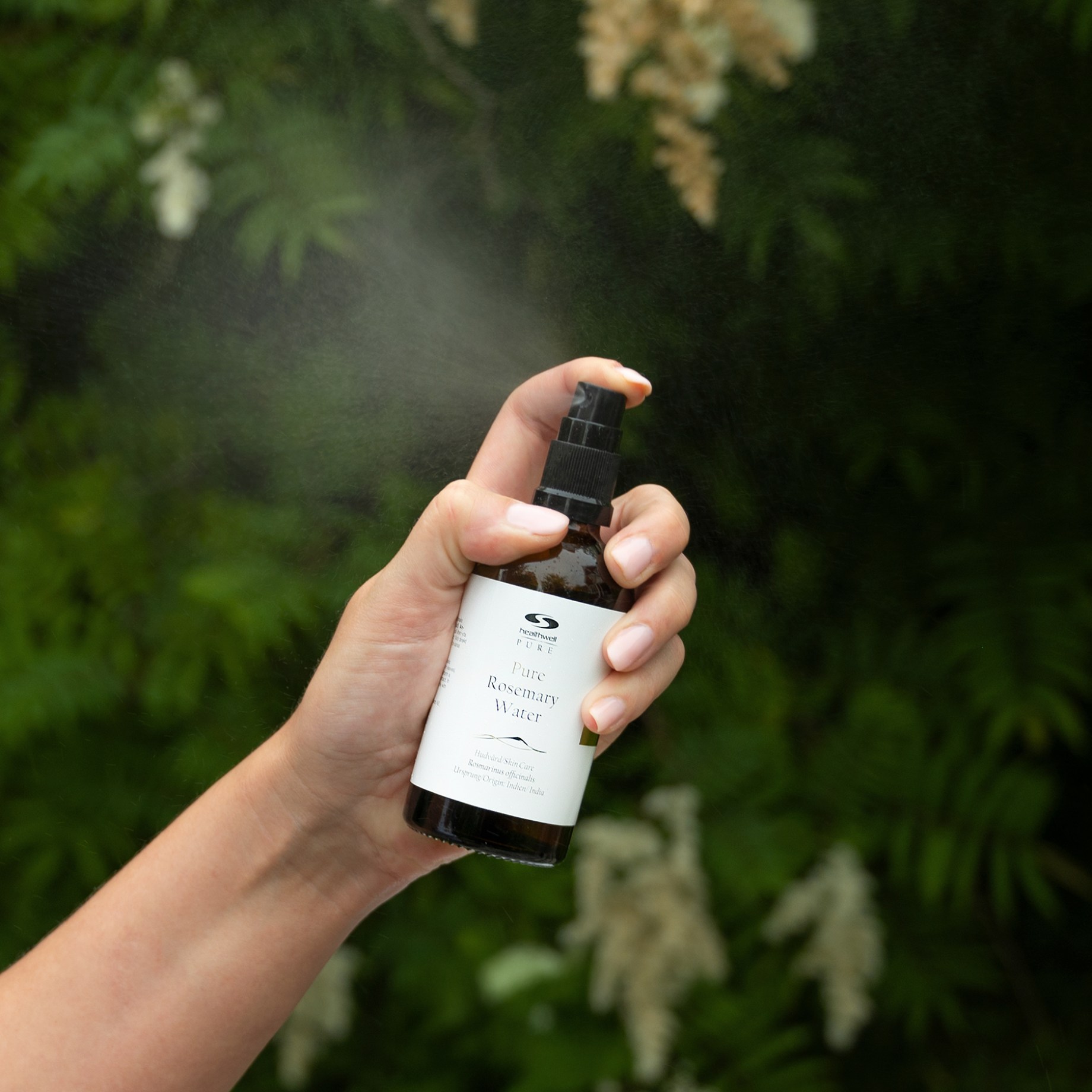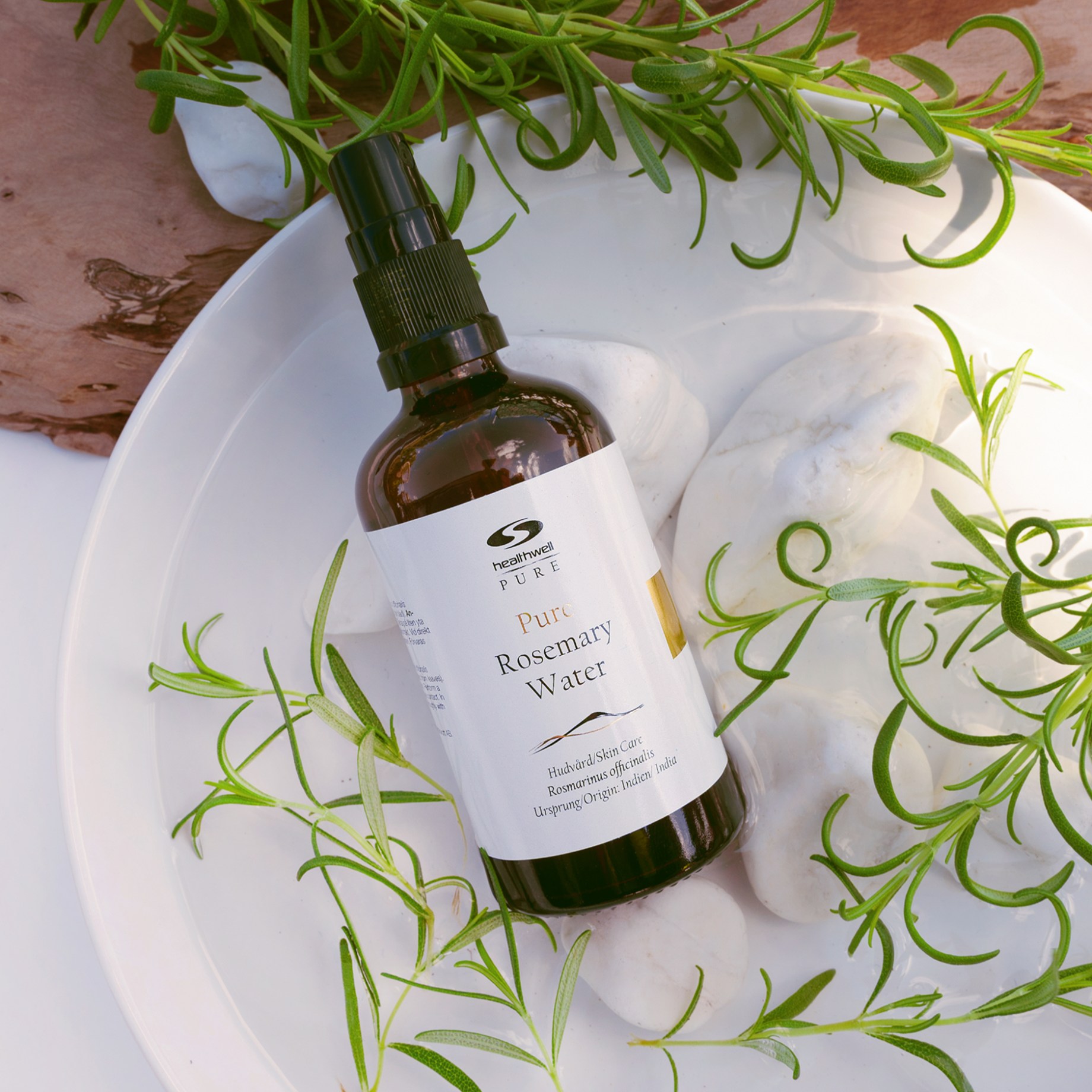 Boosta håret med Healthwell PURE Rosmarinvatten EKO, ett rosmarinvatten som ger dig äkta rosmarin från hela blad, i varje droppe. Rosmarin användes som ett skönhetsknep redan under de gamla grekernas tid, eftersom det ansågs stimulera hårväxt, och är än idag en populär ingrediens i hårprodukter av samma anledning. Healthwell Rosmarinvatten EKO har en kryddig och tydlig doft av rosmarin, är ekologiskt tillverkat och är baserat på hydrolat som ger hög kvalitet utan konstgjorda tillsatser. Redo att sprayas direkt på hår eller hud, eller blandas med andra produkter!