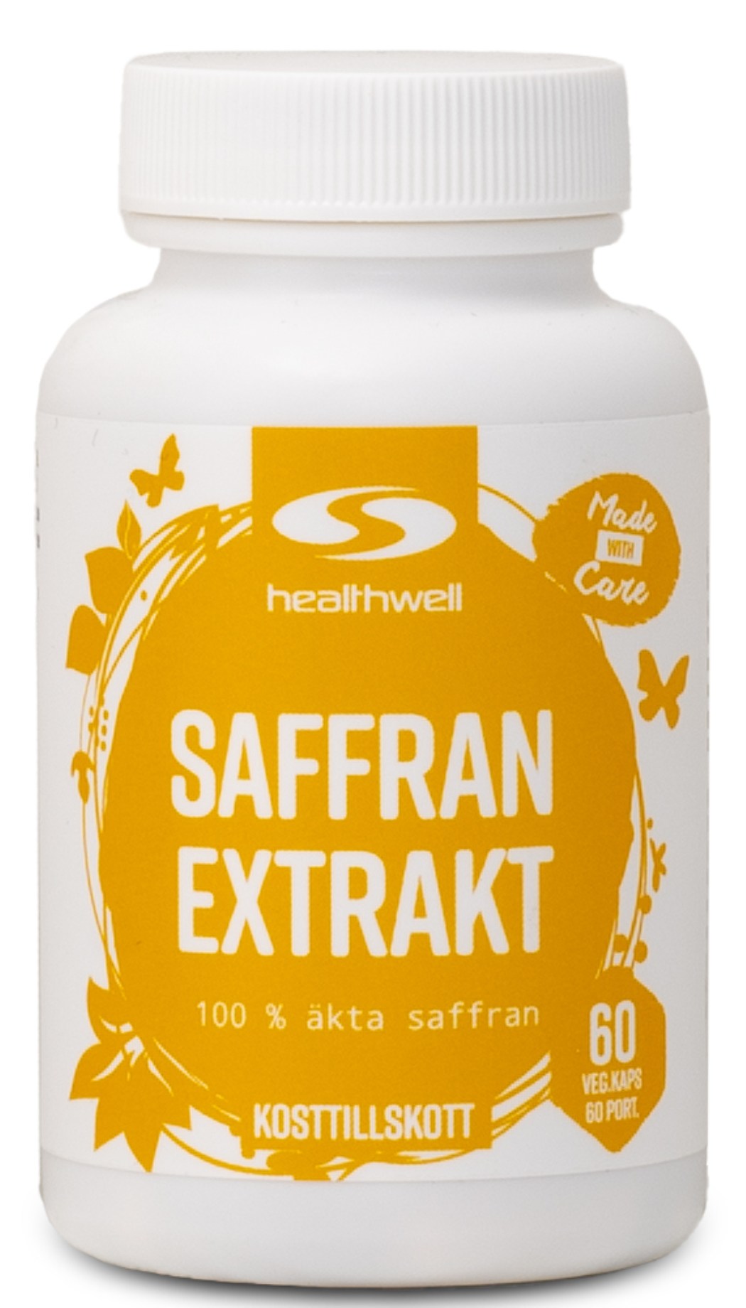 Healthwell Saffran Extrakt innehåller en koncentrerad mängd saffran, rik på det aktiva ämnet crocin som är välkänt inom forskning. Crocin är det som ger saffran en gulaktig, karakteristisk färg. Doften och smaken i saffran kommer från safranal, och bland de aktiva ämnena ingår även picrocrocin och crocetin.