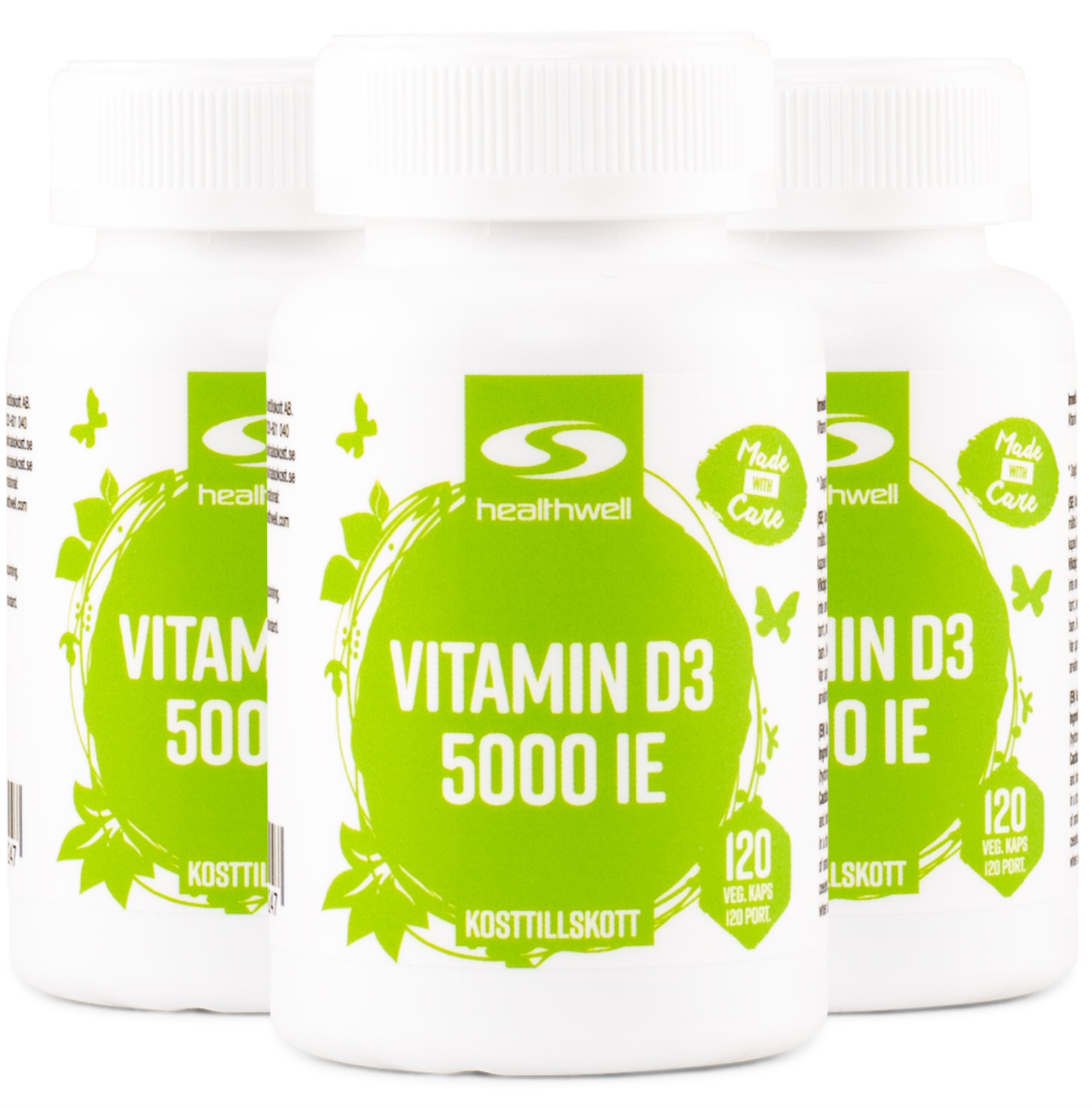 Vitamin D3 5000 IE är ett högdoserat vitamintillskott från Healthwell.
