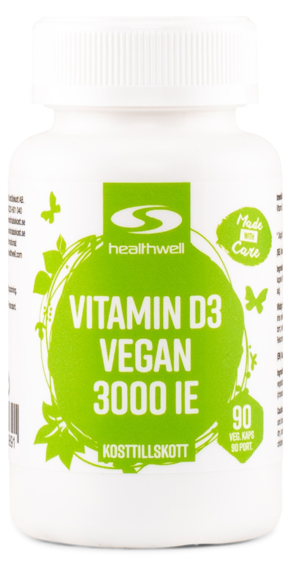 På grund av att D3-vitaminer främst återfinns via solen och i animaliska livsmedel blir det extra svårt för en vegan eller strikt vegetarian att få i sig detta vitamin. Därför är Healthwell Vitamin D3 Vegan 3000 IE baserad på vitamin D3 (kolekalciferol) från alg, till skillnad från de flesta D-vitamintillskott som ofta kommer från fårullsfett.