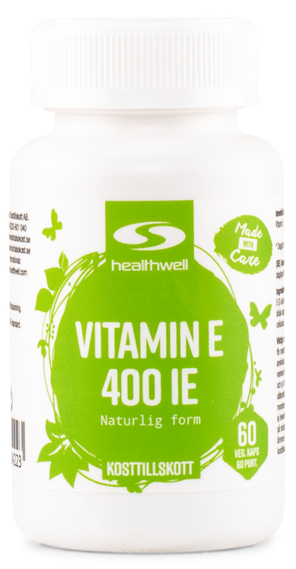 Healthwell Vitamin E 400 IE är en optimerad produkt med E-vitamin från naturlig källa, med naturlig balans mellan de fettlösliga näringsämnen som bygger upp E-vitaminet. Här är E-vitamin i formen D-alfa-tokoferolacetat, vilket ger de bästa förutsättningarna för upptag och utnyttjande av vitaminet i kroppen. En kapsel innehåller 400 IE E-vitamin, tillsammans med kokosolja för bästa upptag.