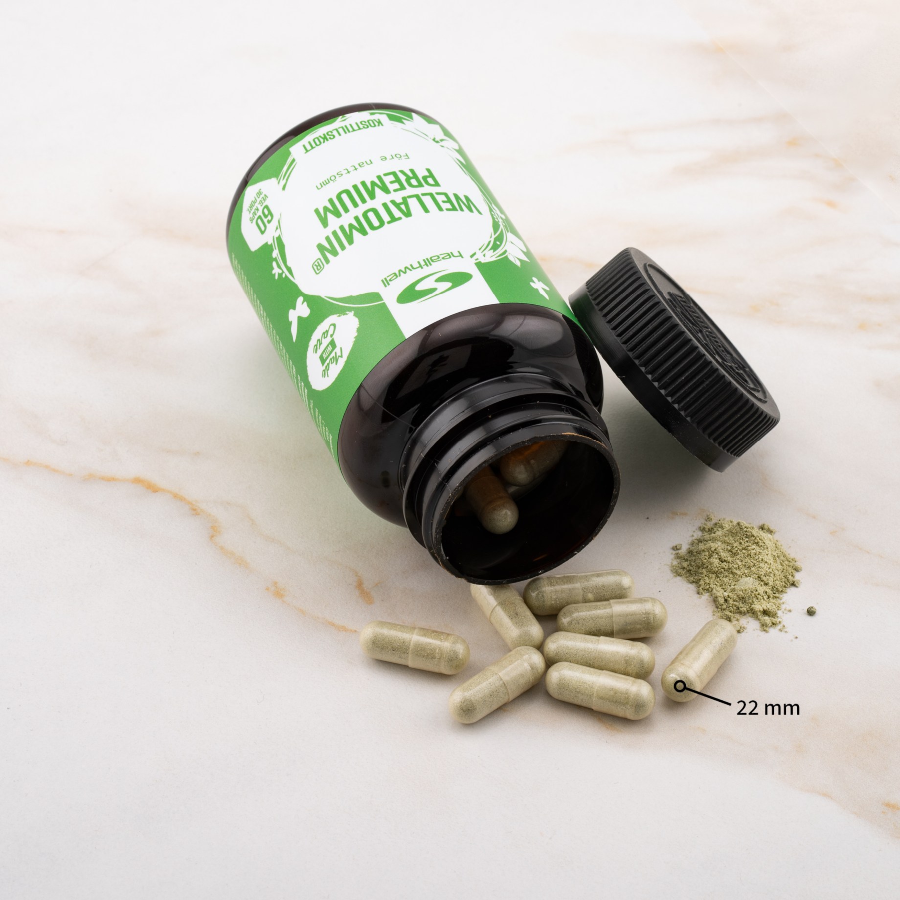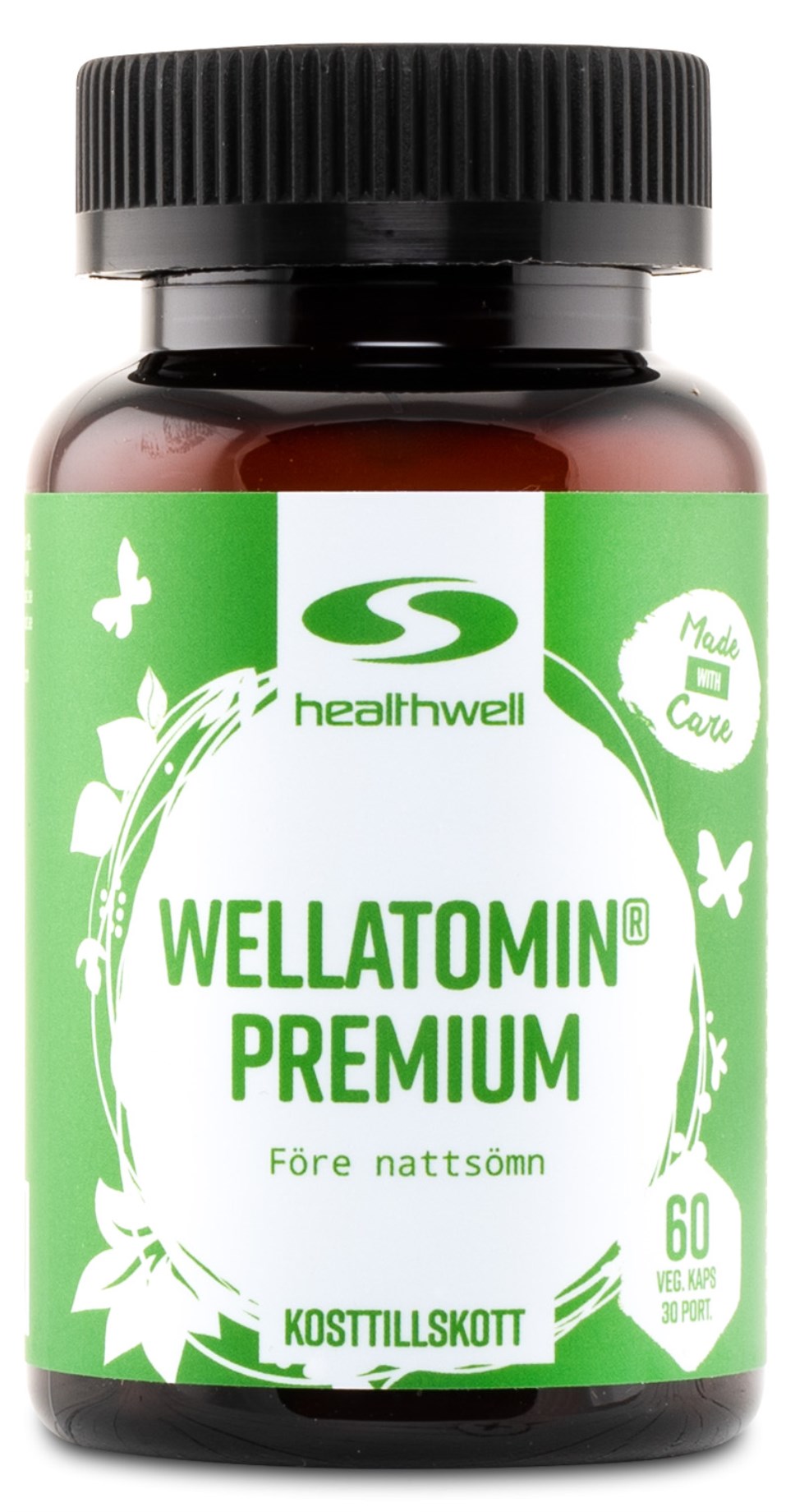 Healthwell Wellatomin® Premium är utvecklad för att intas på kvällen före nattsömn, och innehåller uteslutande naturliga och välstuderade ämnen. Wellatomin® Premium är speciellt framtagen för dig som har fullt upp i livet men som gärna håller dig borta från preparat som kan orsaka dåsighet dagen efter, eller som kan vara beroendeframkallande. Här ingår istället aminosyran GABA som förekommer naturligt i kroppen samt den mycket omtalade aminosyran L-teanin som återfinns i grönt te, tillsammans med ett patenterat växtextrakt och vitamin B6. Ämnena verkar effektivt tillsammans utan negativa bieffekter. Låt Wellatomin® Premium vara en naturlig del av din kvällsrutin.