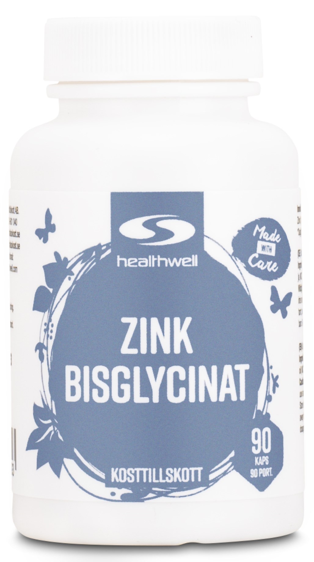 Healthwell Zinkbisglycinat är vegetabiliska kapslar med en högupptaglig, kelaterad form av mineralet zink. Zink har flera viktiga funktioner i kroppen – bland annat fungerar det som en antioxidant och bidrar till kvaliteten på hud, hår och naglar. Healthwell Zinkbisglycinat är ett utmärkt val för dig som vill ha ett zinktillskott som kroppen lätt kan ta upp, eftersom kelateringen gör att zinket absorberas mer effektivt i kroppen. Det kan i sin tur bidra till att optimera kroppens nivåer av mineralet.