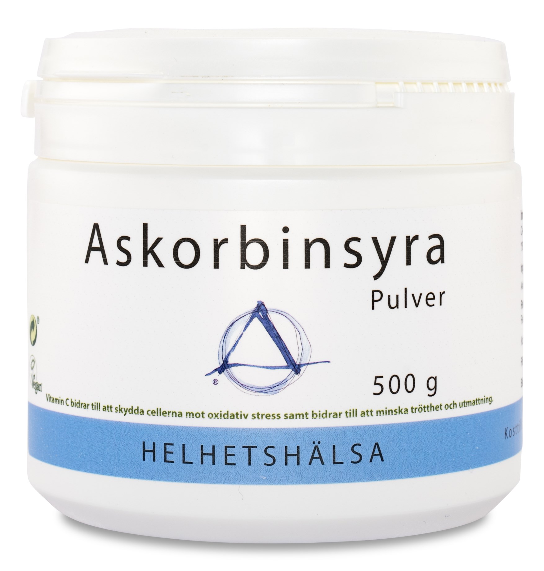 Helhetshälsas Askorbinsyra är ren C--vitamin i pulverform, fritt från tillsatser. C-vitamin har många viktiga funktioner i kroppen, bland annat fungerar det som en antioxidant som hjälper till att motverka oxidativ stress, samt bidrar till ett normalt immunsystem. Dessutom hjälper det till att motverka känslor av trötthet och utmattning. Använd som ett dagligt tillskott vid behov, pulverformen gör det lätt att dosera även när du vill minska på dosen.