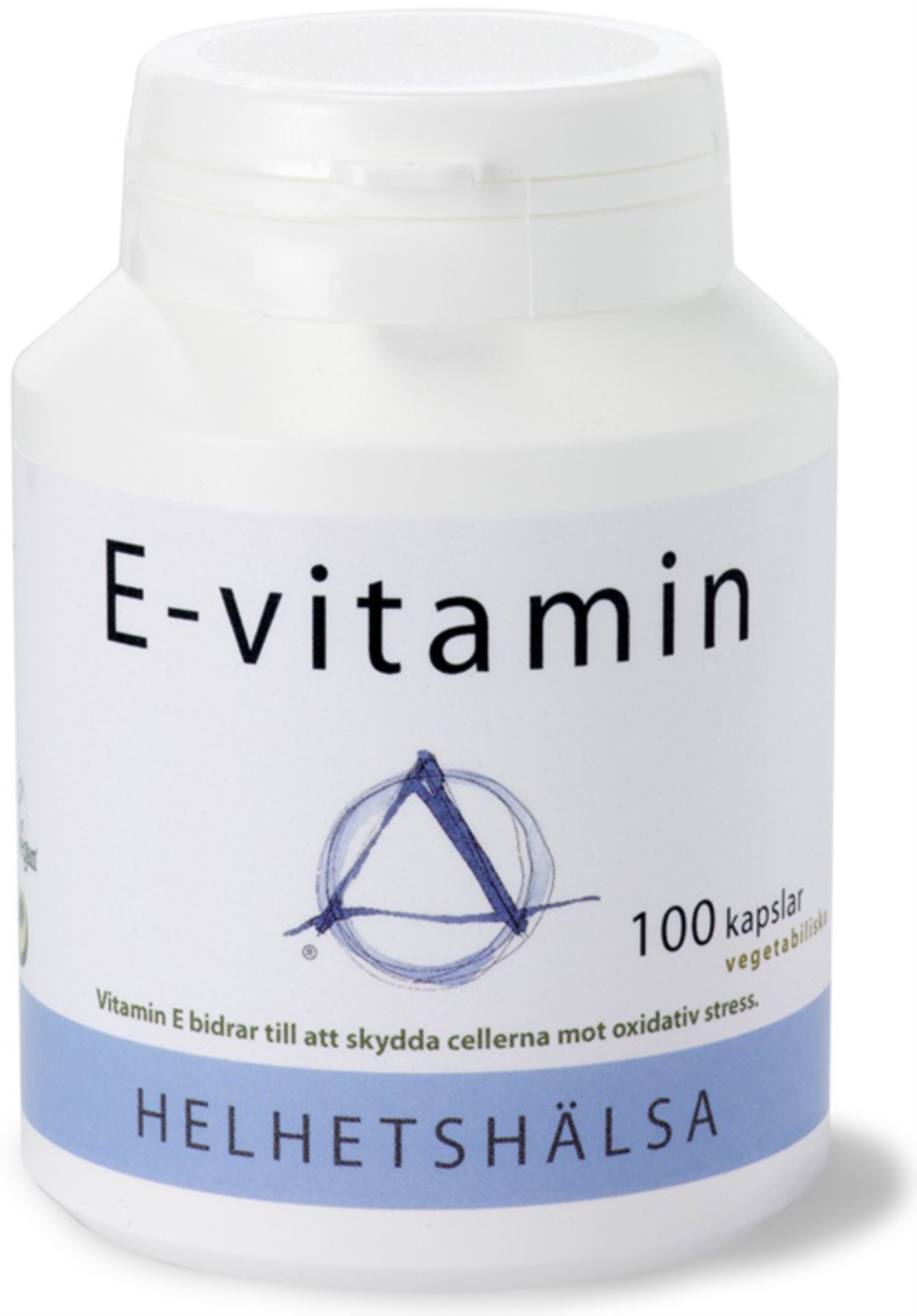 Helhetshälsa Vitamin E innehåller en lättupptaglig form av E-vitamin. Vitamin E fungerar som en antioxidant i kroppen och skyddar cellerna från oxidativ stress. E-vitamin är fettlösligt och behöver en liten mängd fett för att kunna tas upp optimalt i kroppen, ta därför vitaminet tillsammans med måltid.