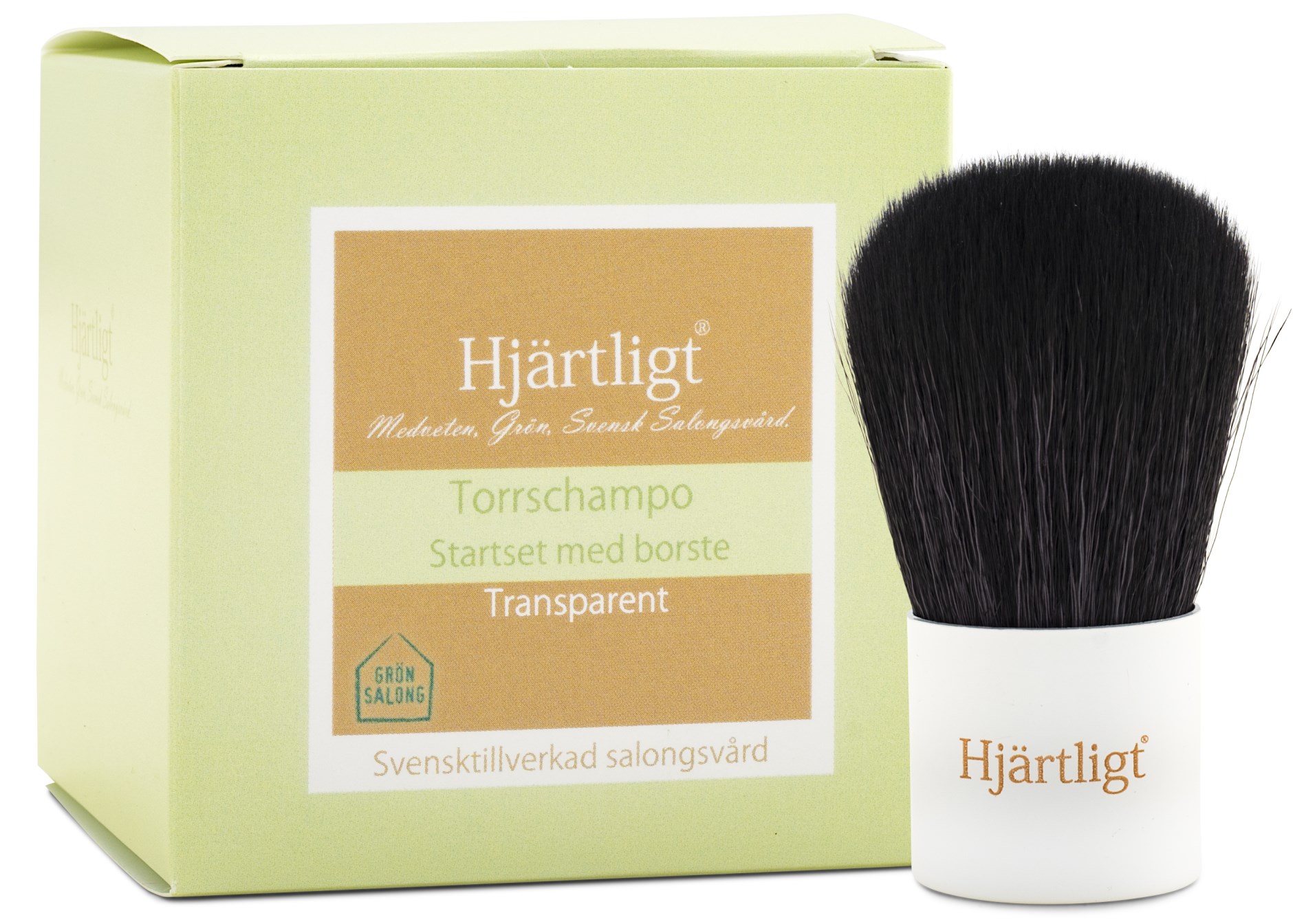 Hjärtligt Torrschampo + Borste är ett startkit som innehåller Hjärtligt Torrschampo och tillhörande Hjärtligt Torrschampo Borste. Torrschampot ger dig en smidig och snabb uppfräschning av håret genom att absorbera fett och ge håret extra volym. Torrschampot passar alla hårtyper, även vid känslig hårbotten. Schampot är 100 % växtbaserat, utan skadliga kemikalier och parfym och är märkt med Grön Salong som indikerar en miljövänlig produkt.