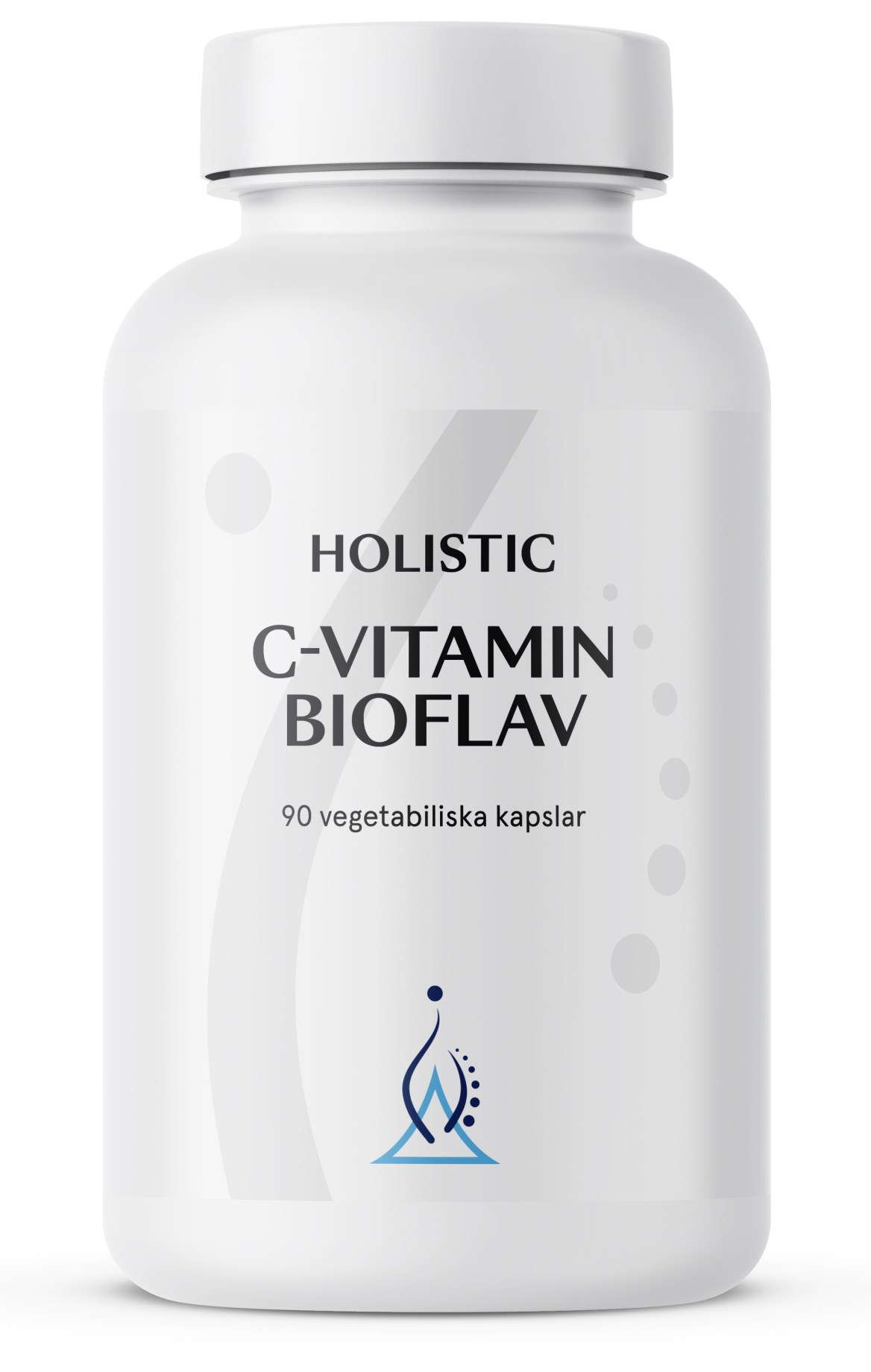 Holistic C-vitamin innehåller vitamin C tillsammans med bioflavonoider. Vitamin C verkar som antioxidant och skyddar cellerna från nedbrytning och bidrar till att immunsystemet fungerar normalt. Dessutom hjälper C-vitamin till vid upptaget av järn från maten vi äter. Kapslarna är helt vegetabiliska och ger 500 mg C-vitamin per kapsel. Även bioflavonoider har antioxidativa egenskaper och skyddar C-vitaminet från förstörelse.