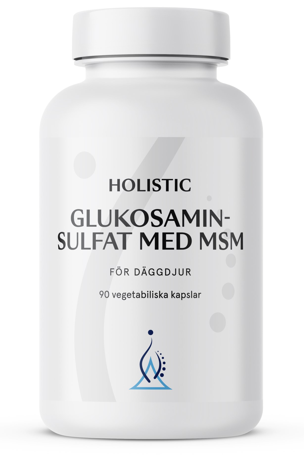 Holistic Glukosaminsulfat med MSM är ett tillskott speciellt utvecklat för ledhälsan hos hundar och andra däggdjur. Glukosaminsulfat kan påverka kroppens produktion av hyaluronsyra, vilken finns i leder för att fungera som smörjmedel och verka för normal rörlighet. MSM, också känt som en typ av organiskt svavel, finns även det naturligt i kroppens vävnader och är en viktig beståndsdel i kroppens kollagen. Kollagen i sin tur bygger upp bindväv, senor och brosk och är även det av vikt för en normal rörlighet.
