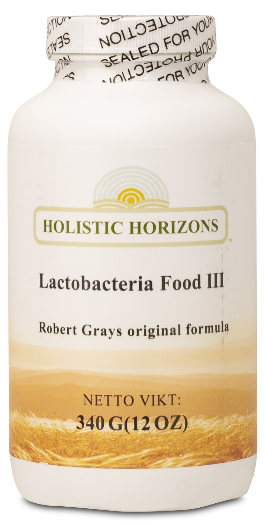 Detta lättlösliga pulver är perfekt att använda efter tarmreningsprogrammet för att upprätthålla en hälsosam stam av laktobakterier i tarmen. Lactobacteria Food 3 är Holistic Horizons senaste genombrott med en blandning av örter och inulin som är ett prebiotiskt fiber som föder nyttiga tarmbakterier.