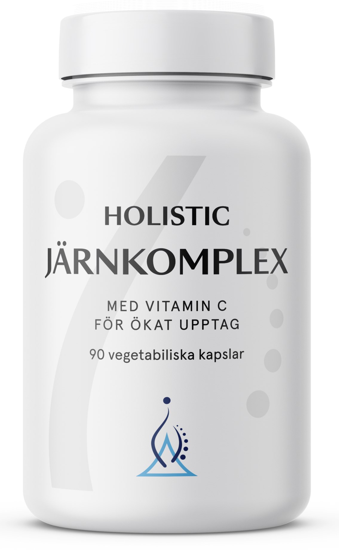 Holistic Järnkomplex är ett tillskott med järn i formerna järnbisglycinat och järnglukonat. Järn bidrar bland annat till normal blodbildning, till immunsystemets normala funktion samt till att minska trötthet och utmattning. Holistic Järnkomplex innehåller dessutom vitamin C som ökar upptagen av järn i kroppen.