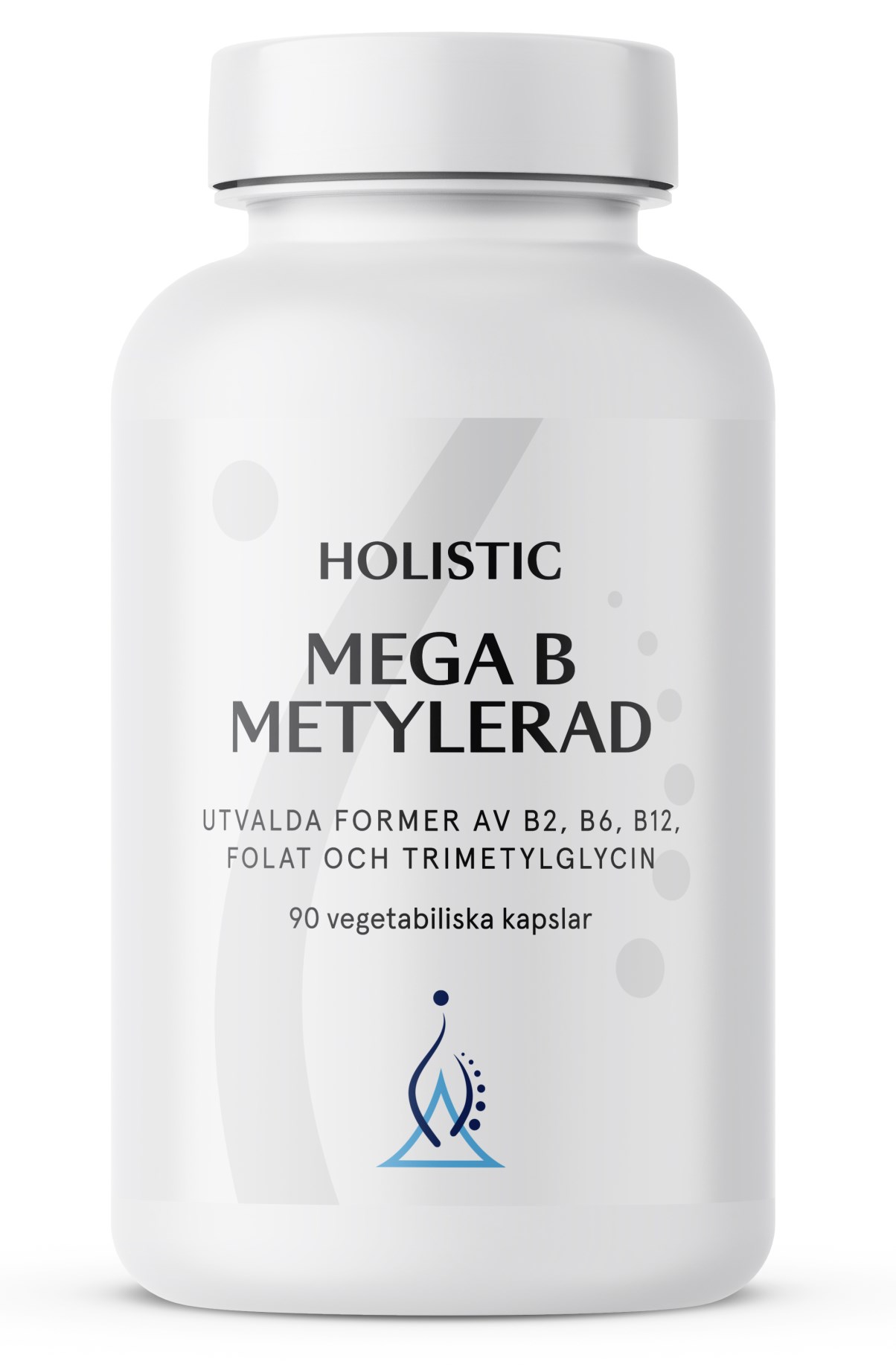 Holistic Mega B Metylerad är ett kosttillskott som innehåller alla former av B-vitaminer. Tillskottet innehåller särskilt utvalda former av B6, B12 och folat, dessa tre bidrar till immunsystemets normala funktion, minskad trötthet och utmattning. B1, B2 och B3 bidrar till en normal energiomsättning och nervsystemets normala funktion. Holistic Mega B Metylerad är även förstärkt med metyldonatorn betain, inositol, PABA och kolin, dessa bidrar till en normal fettomsättning och bibehållen leverfunktion. B-vitamin är ett väldigt bra tillskott för dig som är mycket aktiv eller av annan orsak har en hög ämnesomsättning, för att säkerställa intaget av B-vitaminer. B-vitaminer är vattenlösliga och går inte att lagra i kroppen, därför behöver vi fylla på med det via kosten.