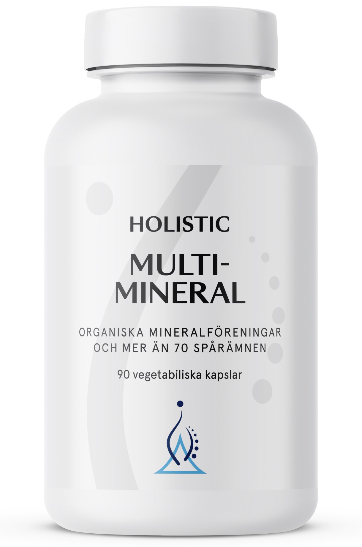 Holistic Multimineral innehåller inte mindre än 13 olika mineral tillsammans med 70 spårämnen. Kapslarna är helt vegetabiliska och passar dig som vill säkerställa ditt dagliga mineralintag. Mineralerna kommer i rimliga proportioner och lättupptagliga mineralföreningar.