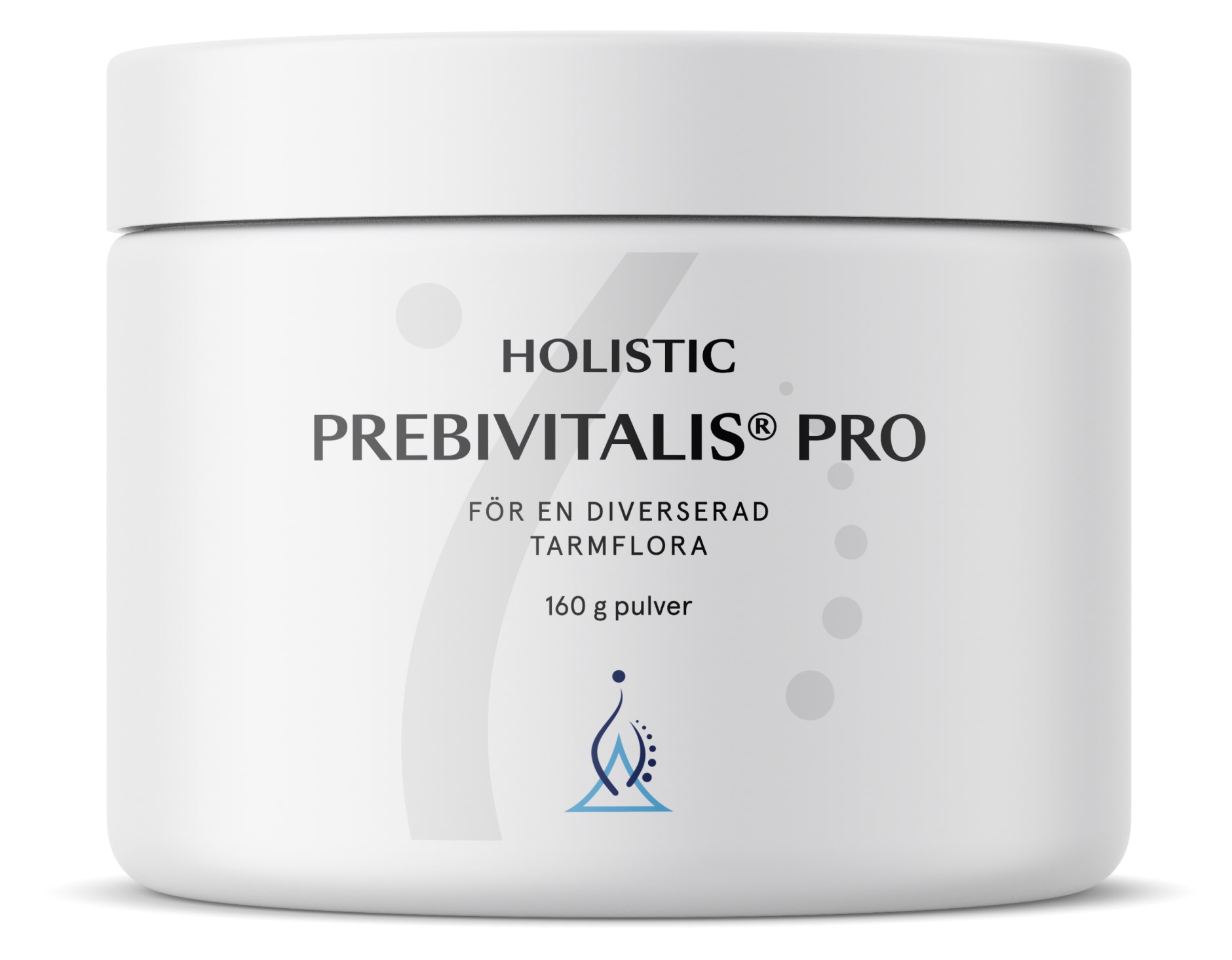 Holistic PrebivitalisPro innehåller en fiberrik pulvermix bestående av 11 olika fibersorter samt sporformade bakteriestammar som till 100% levereras levande till tjocktarmen. Kosttillskott stödjer de smörsyrabildande bakterierna i tarmen samt mångfalden i tarmfloran. Innehåller även resistent stärkelse från grön banan, inulin, bioflavonoider, Bacillus coagulans, FOS, tranbärsextrakt och arabinogalaktan från lärkträd. Samtliga ingredienser är noggrant sammansatta för att bidra till en hälsosam mage och tarm. Holistic PrebivitalisPro är veganskt samt helt fri från mjölk, gluten och soja samt utan smakämnen eller sötningsmedel, vilket gör pulvret perfekt att använda i exempelvis mat, smoothies och bakning.